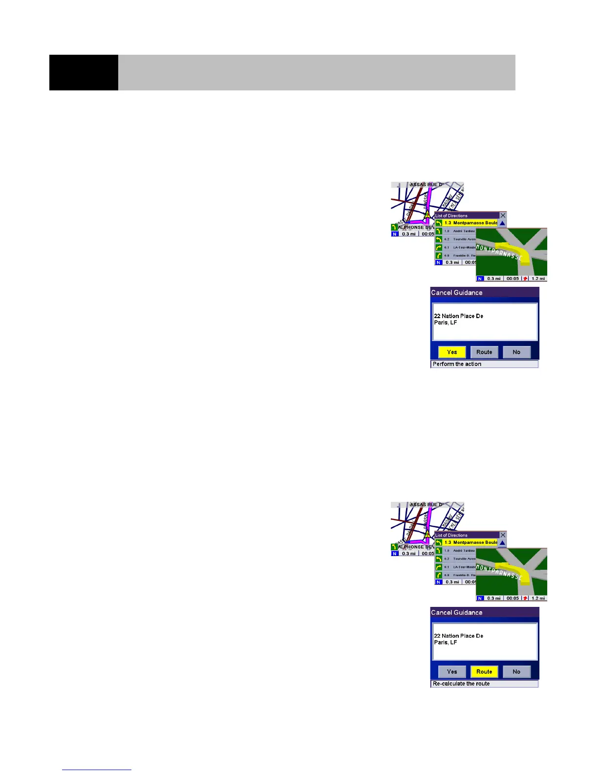 Select "Yes" and press Enter to cancel the route and display