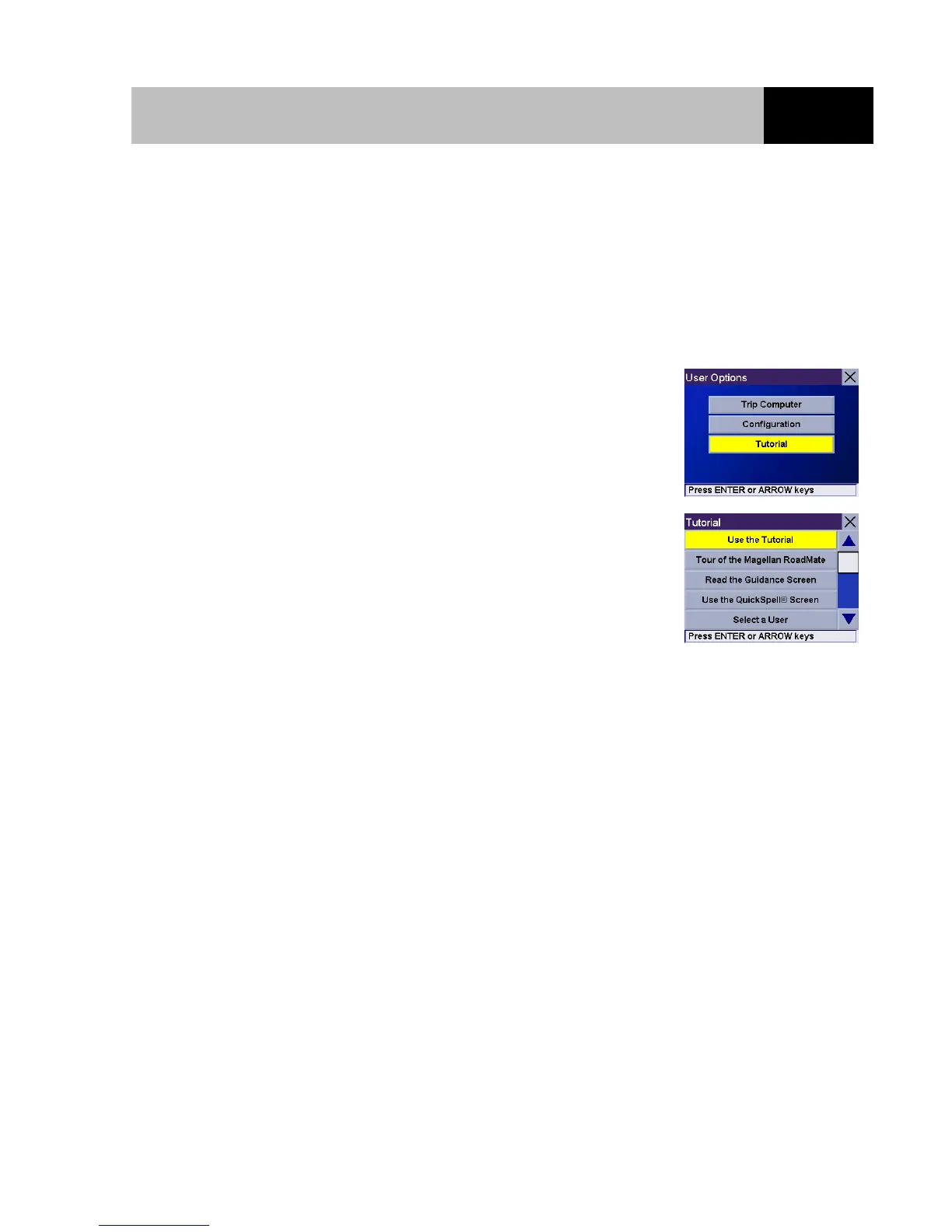 The Magellan RoadMate has a built-in Tutorial which you can view or refer to whenever the Magellan