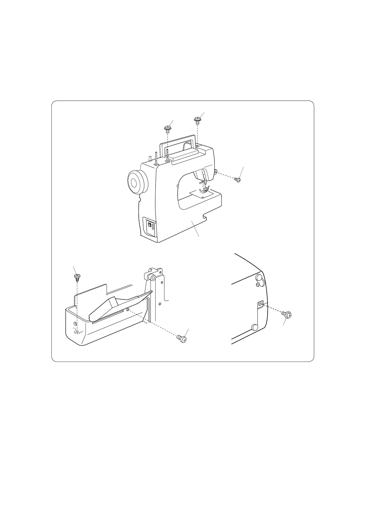 3. Pull up the spool pins. Remove the machine socket. Remove the rear cover clearing