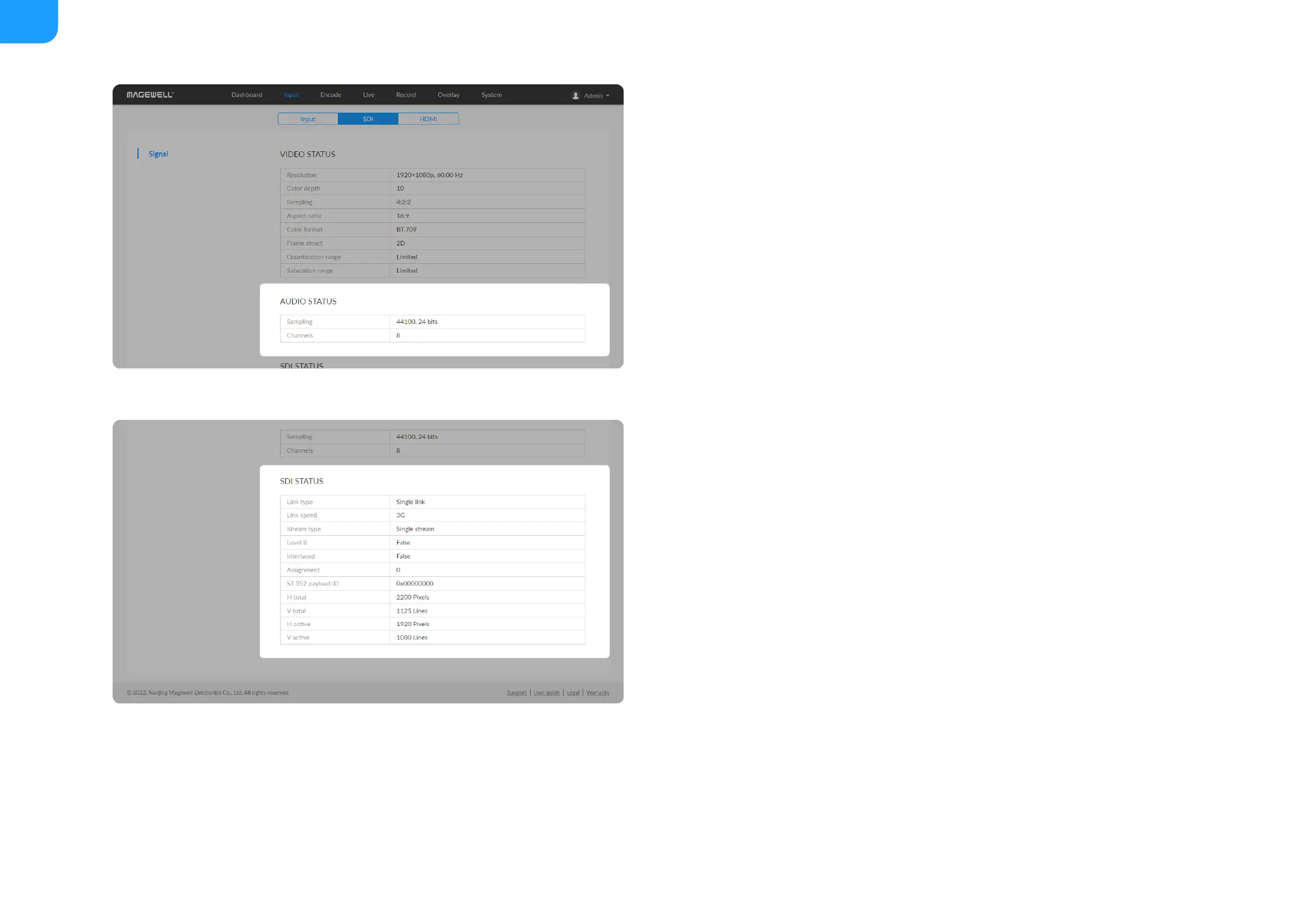 Link type shows link type of input SDI signal, including single link, dual link,