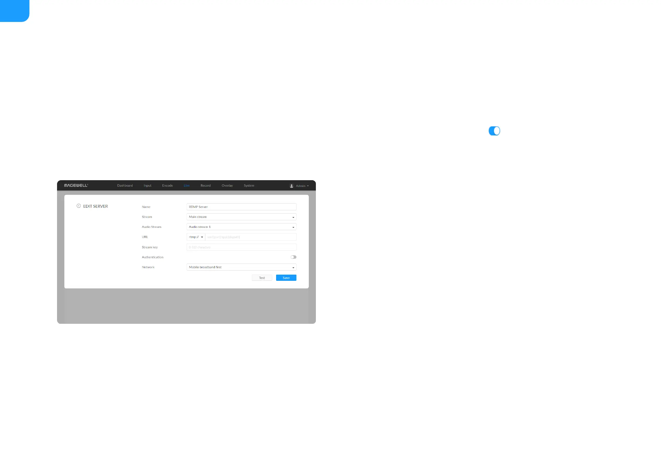 URL: enter the RTMP URL address, or an RTMP address you have obtained