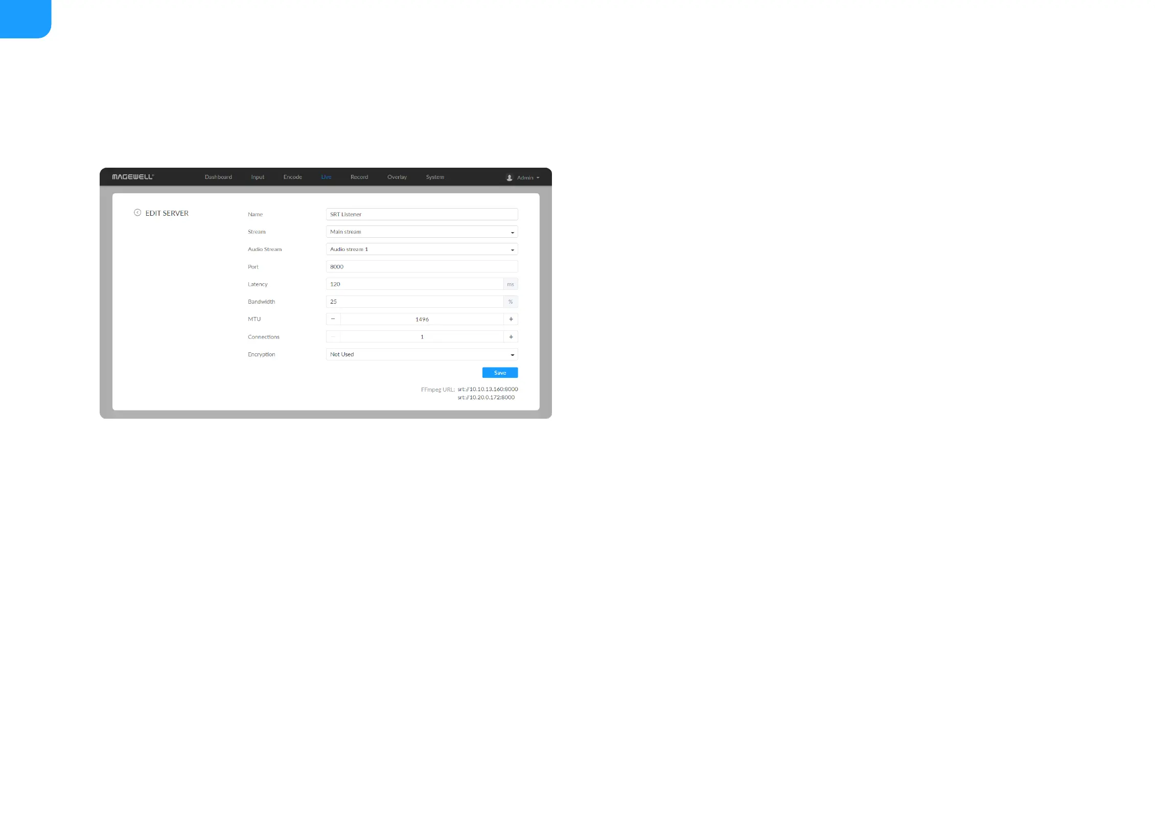Port: specify the service port of the encoder, ranging from 8000, and 10000