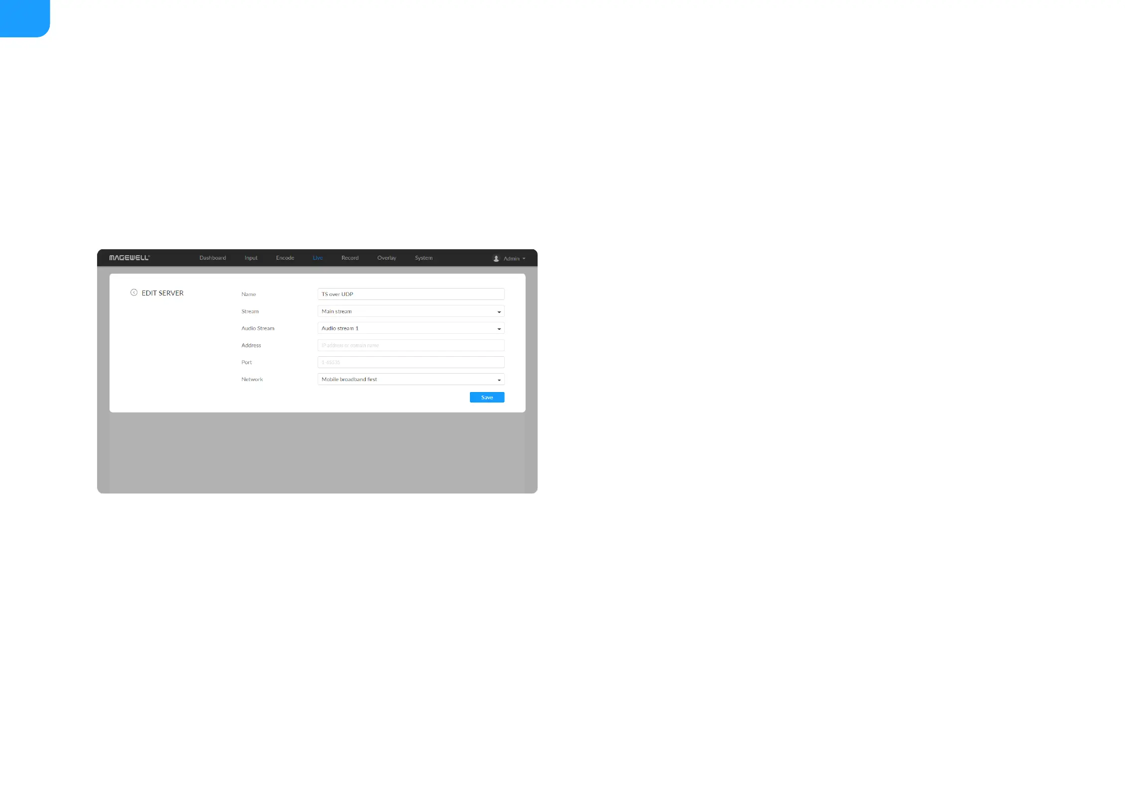 Port: specify the stream port. The value ranges from 1 to 65535.