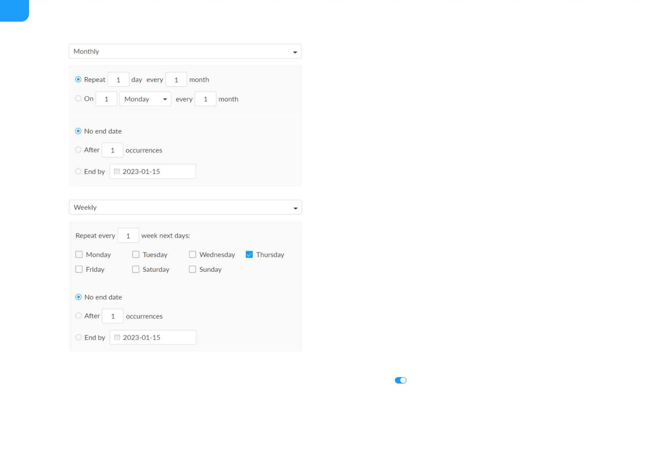 weekday of N month. And you can set the number of repetitions to
