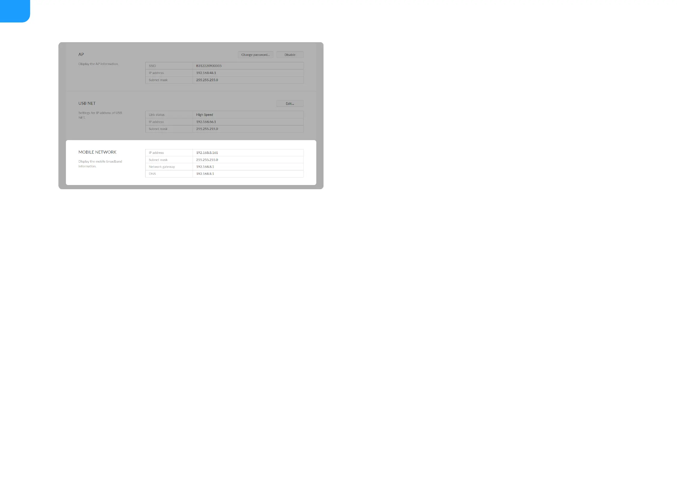 IP address: IP address assigned by the USB modem.