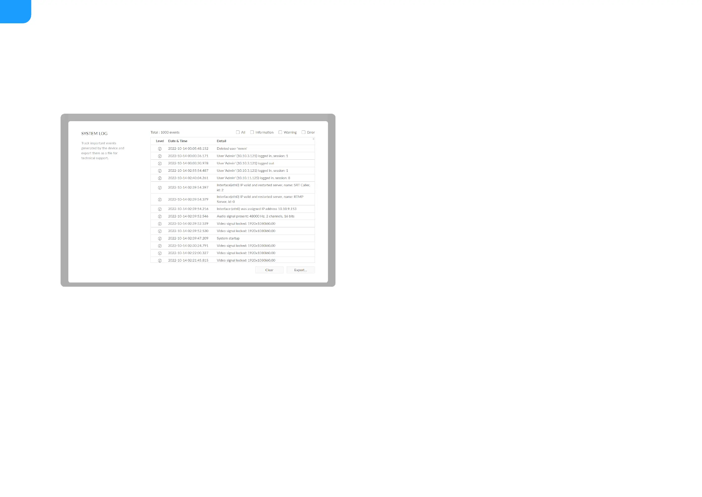 Clear/Export All Logs