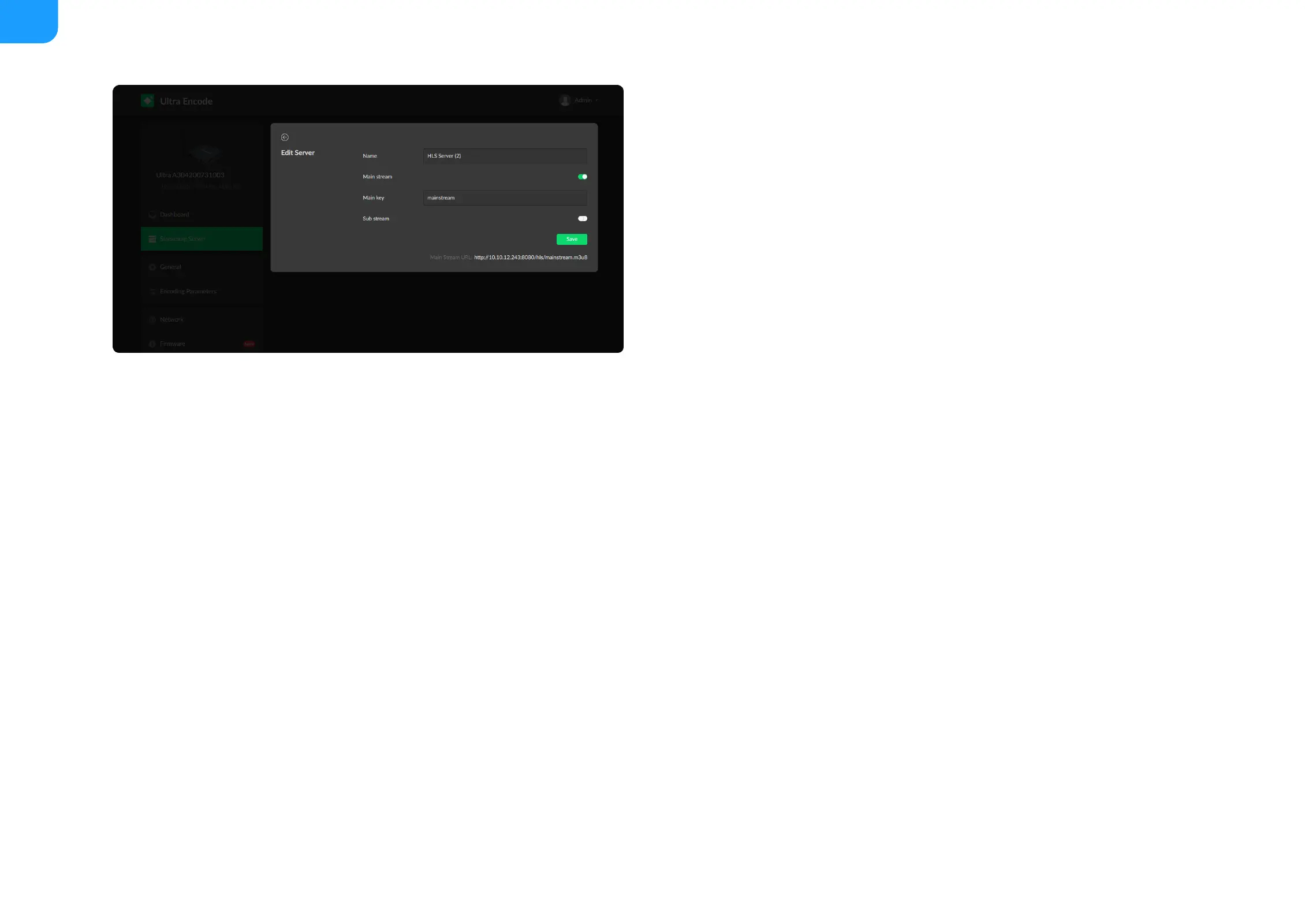 Main stream: switch it on when pushing main stream. Modify the stream