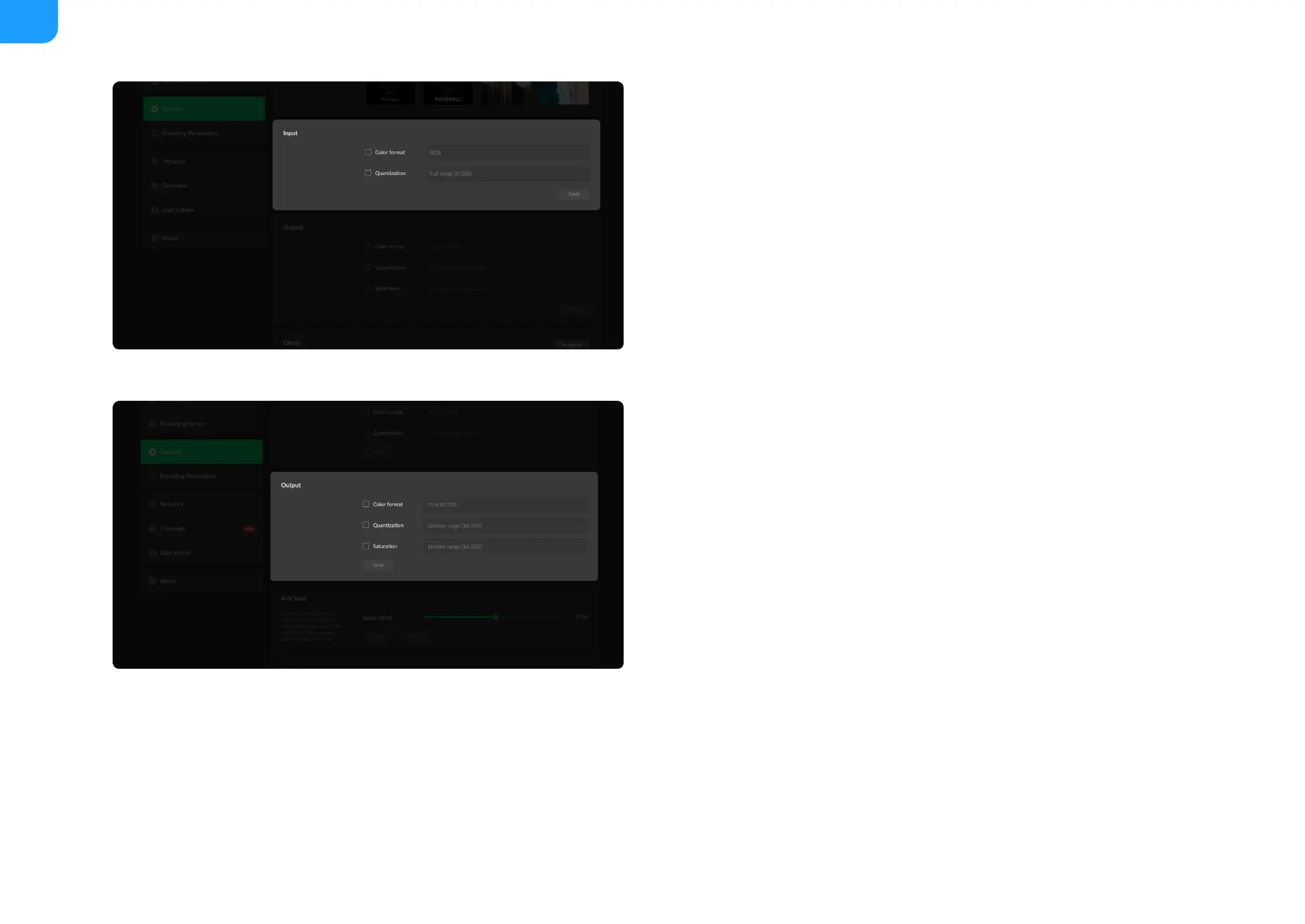 options, including RGB, YUV BT.601, YUV BT.709, YUV BT.2020.