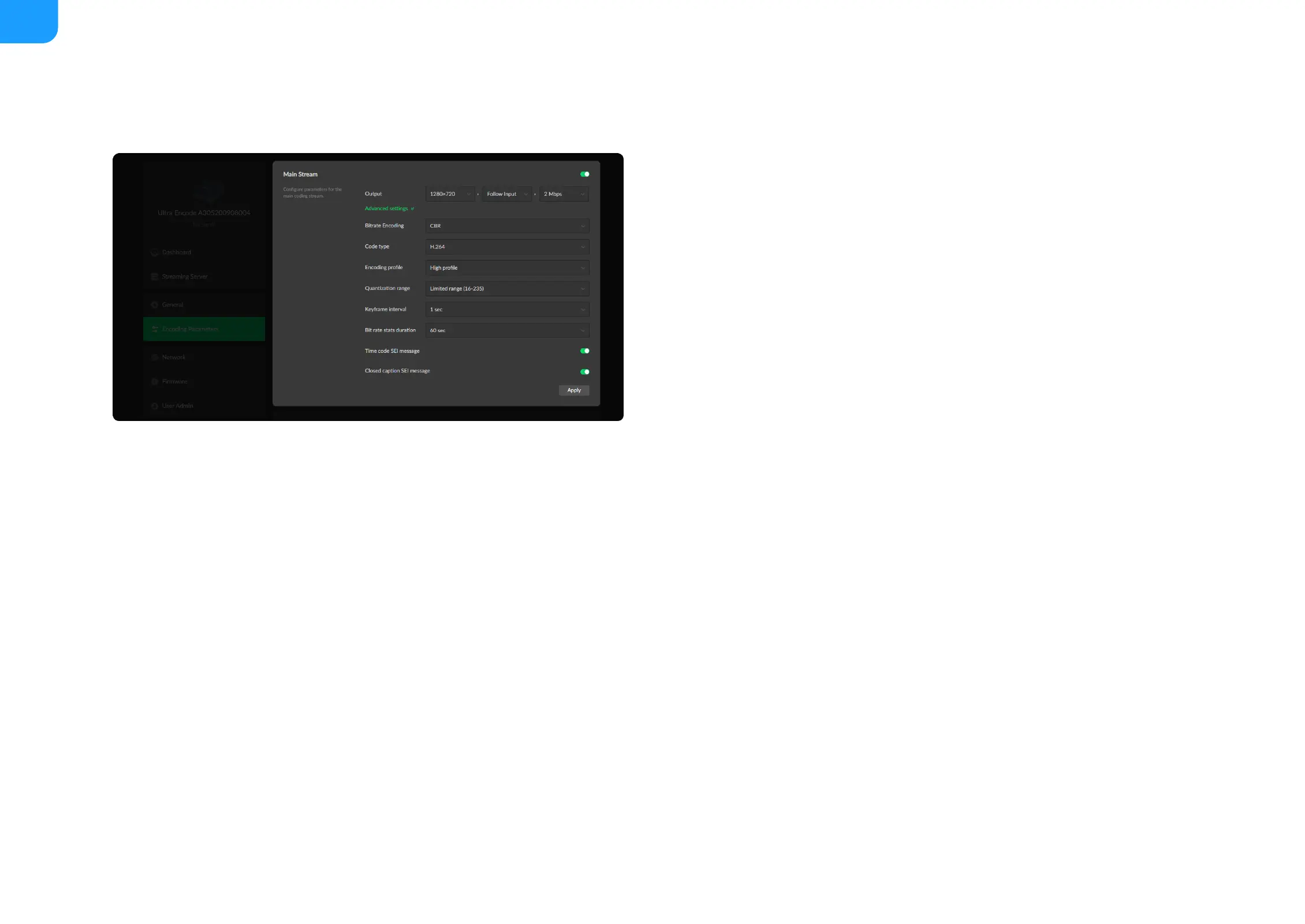 Encoding profile: for H.264 encoder, the profiles can be High/Main
