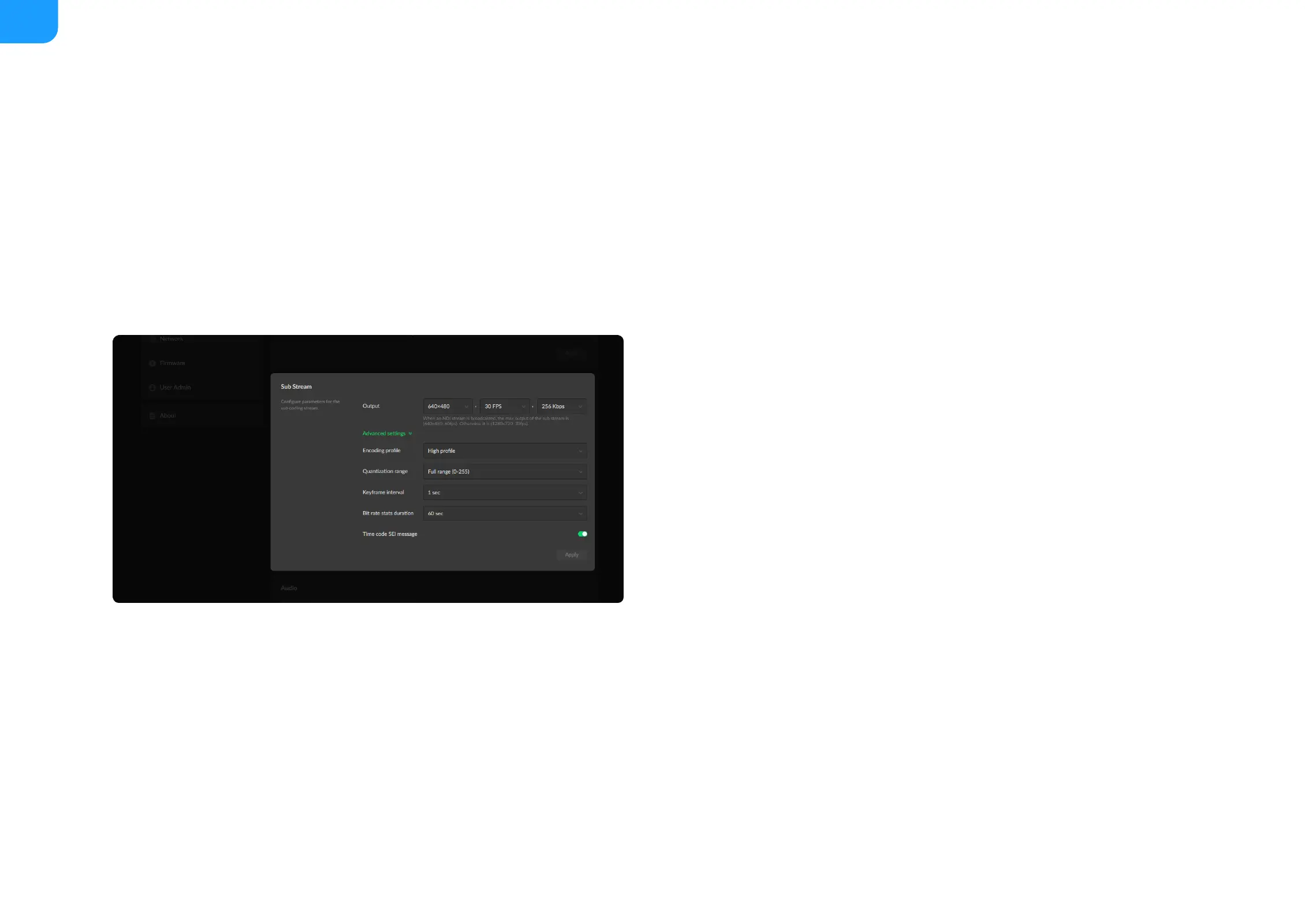 Encoding profile: sub stream uses H.264 encoder. The profiles can be High