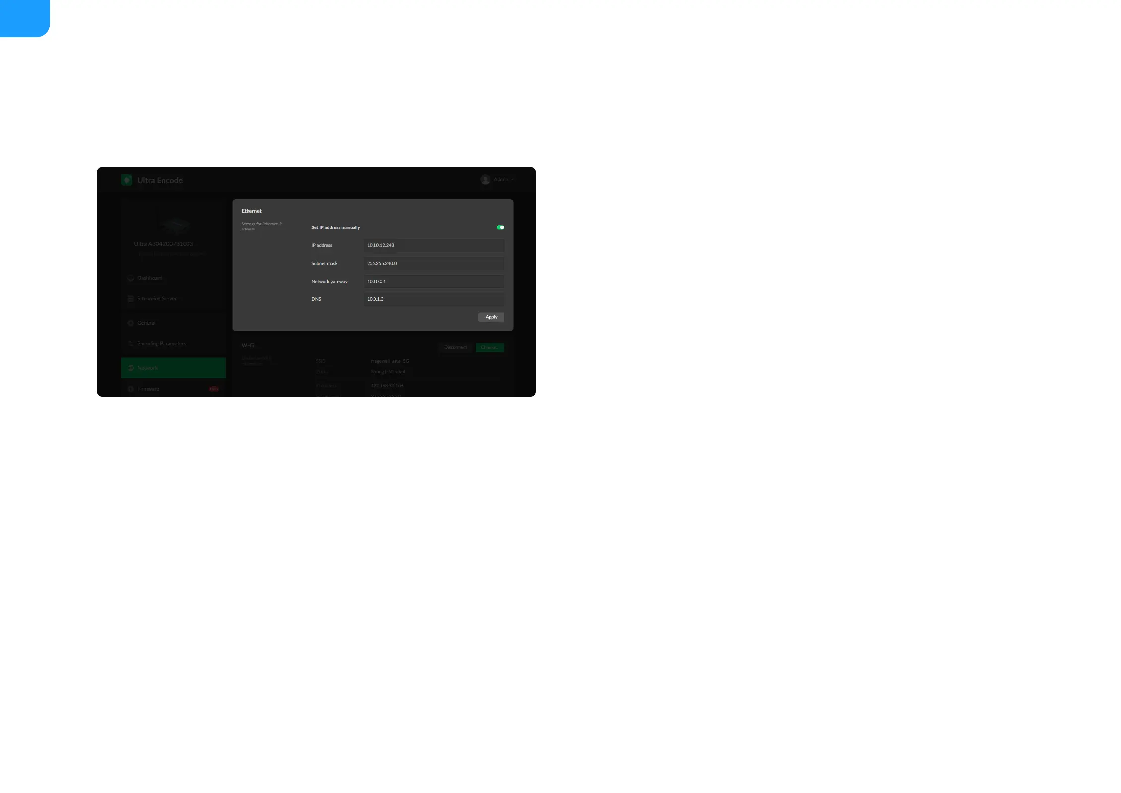 Networking information, including Ethernet, Wi-Fi and AP, can be set in the Network tab.