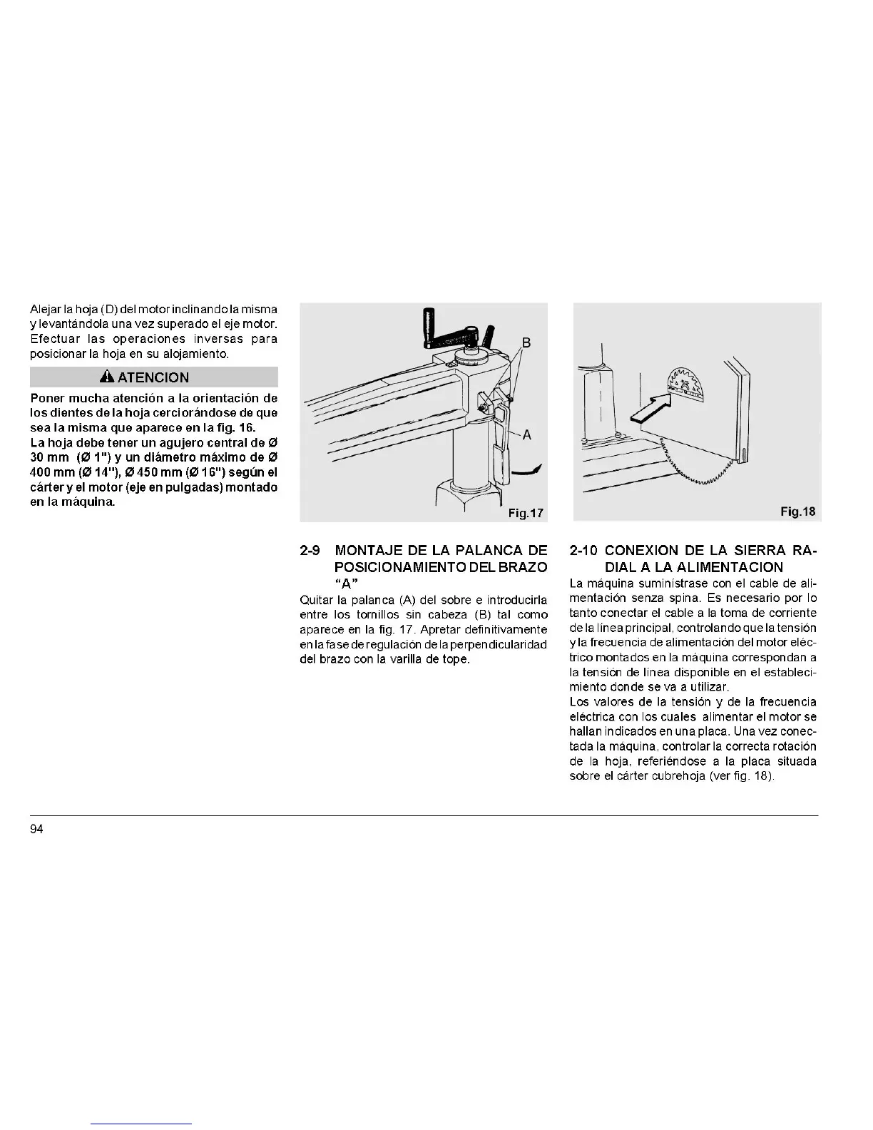 Maggi BIG 800 - Conexion de la Sierra Radial Ala Alimentacion; Montaje de la Palanca de Posicionamiento del Brazo A