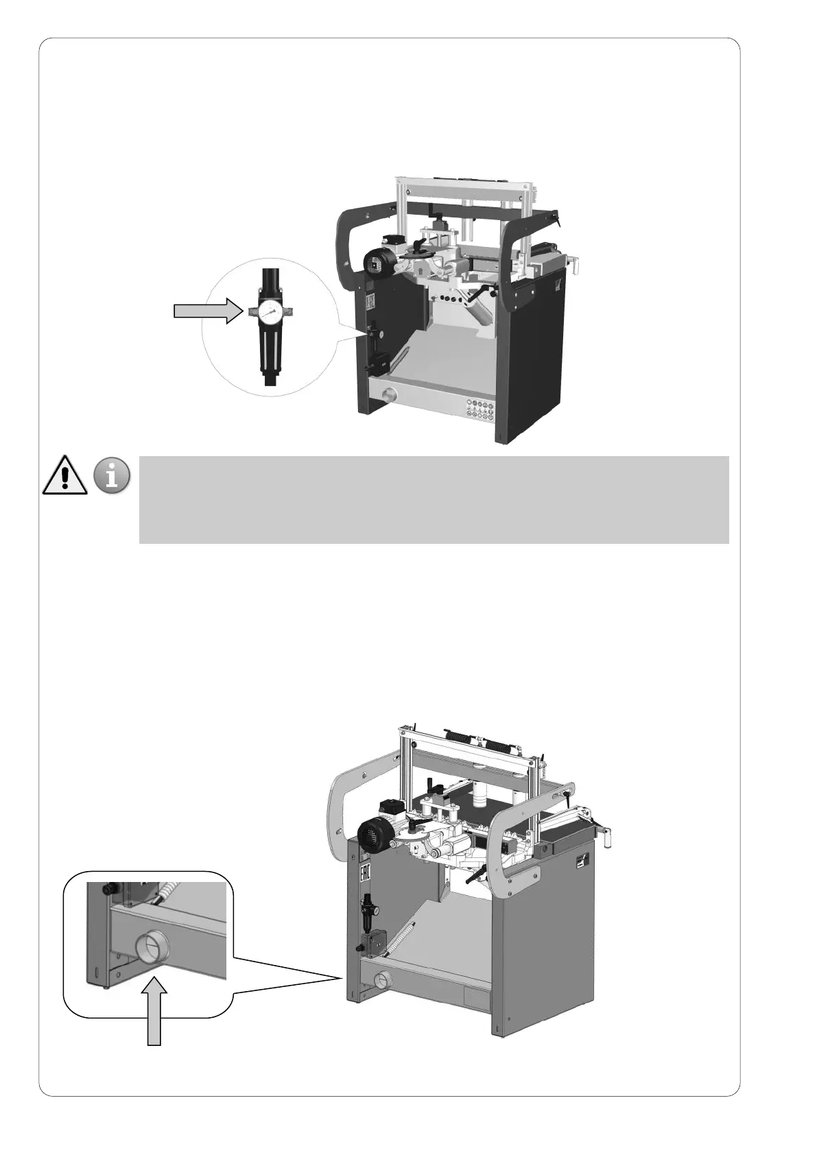 The machine must be connected to a suction and filtering system for dust and chips produced during