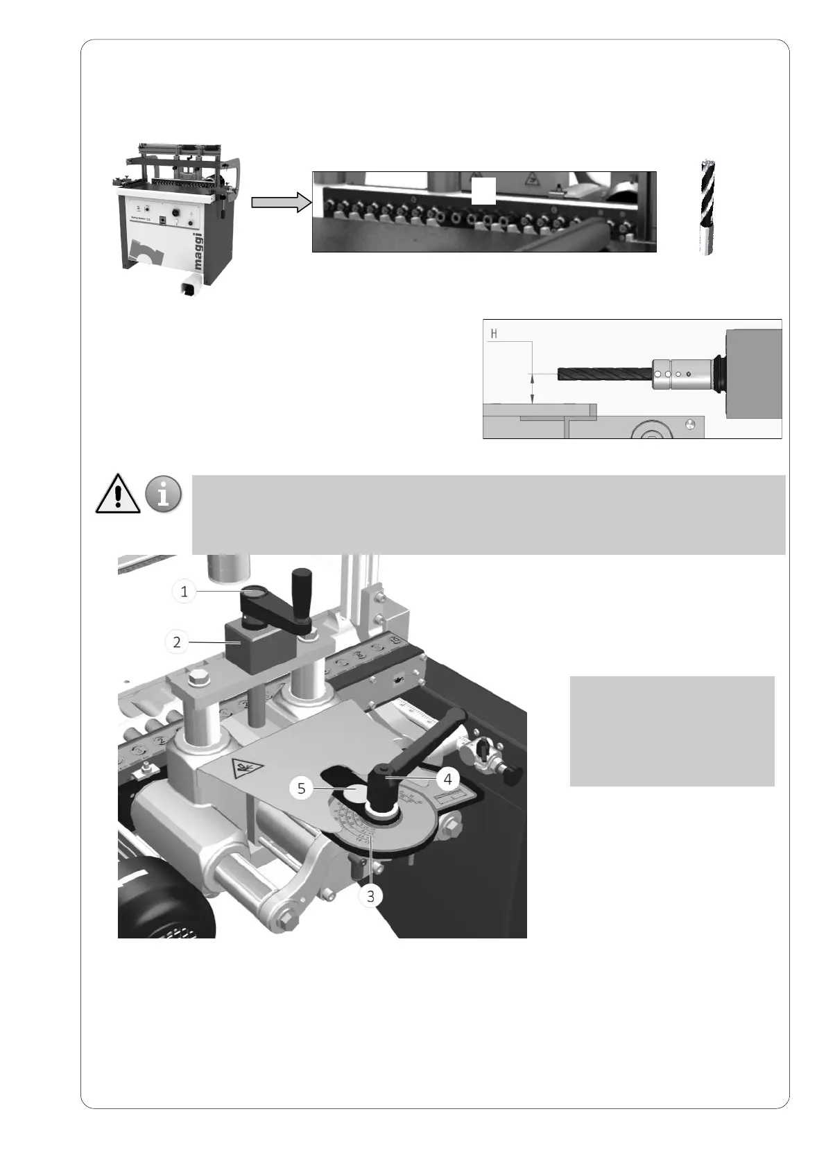 c) Adjust the boring depth: find on the depth selection screw (3) the scale referring to the total length of the