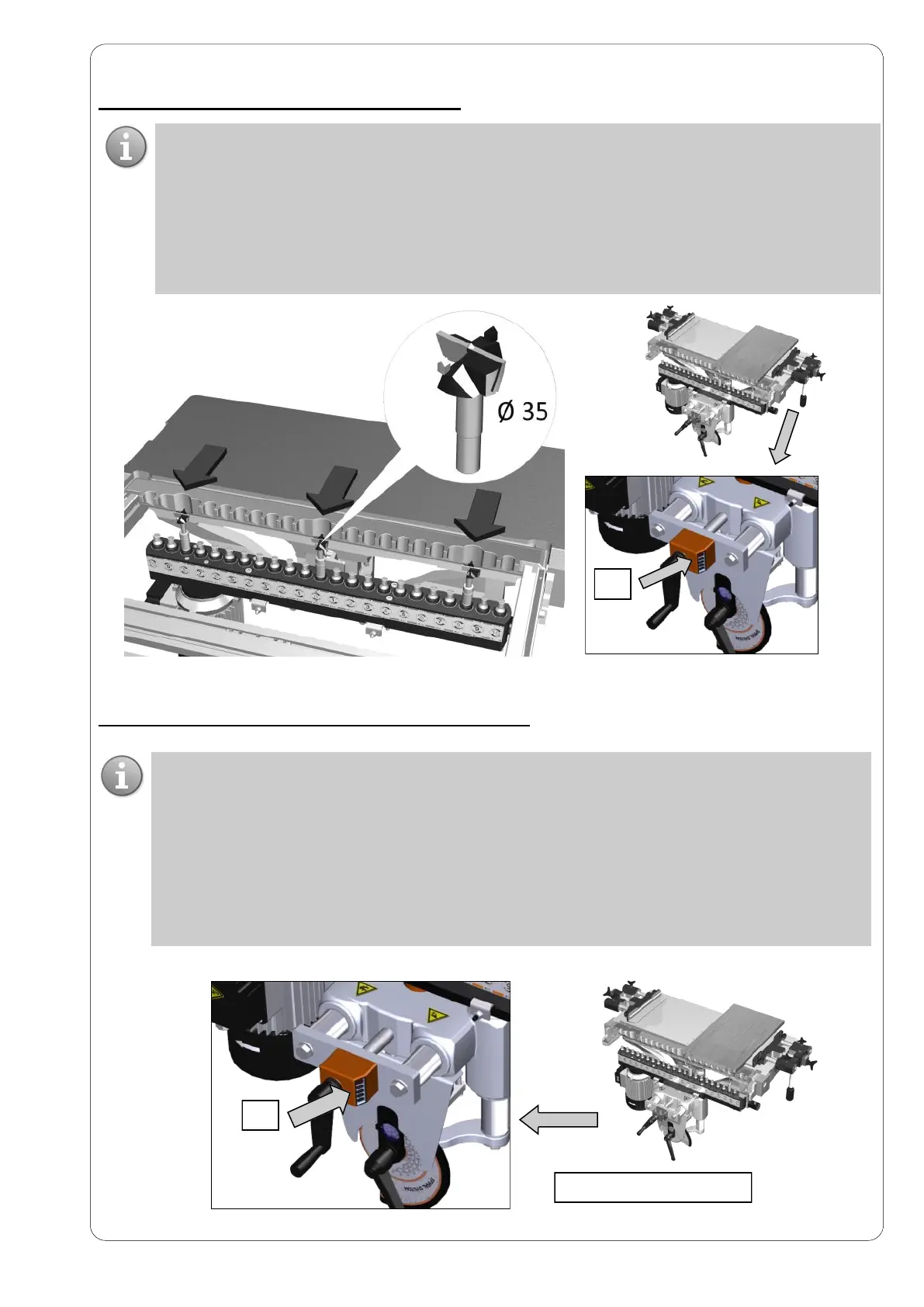 MOUNT THE 35mm O.D. TOOL MAX ONLY IN THE 3 SPECIAL POSITIONS ON THE MACHINE