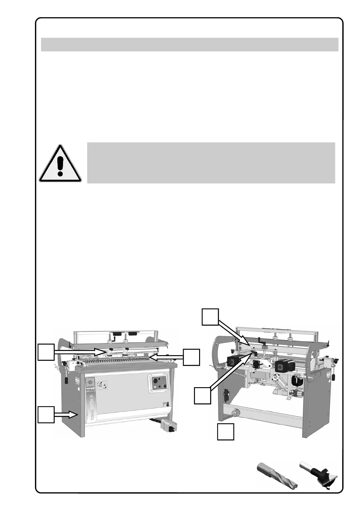 4) Keep off any parts in movement of the machine. Never touch the spindles and/or their respective parts in