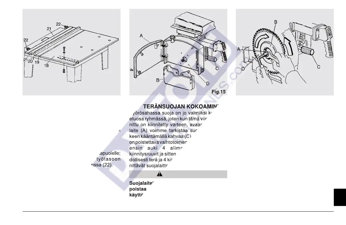 dollisesti terä ja 4 kiinnitysruuvia (D) jotka kiin-