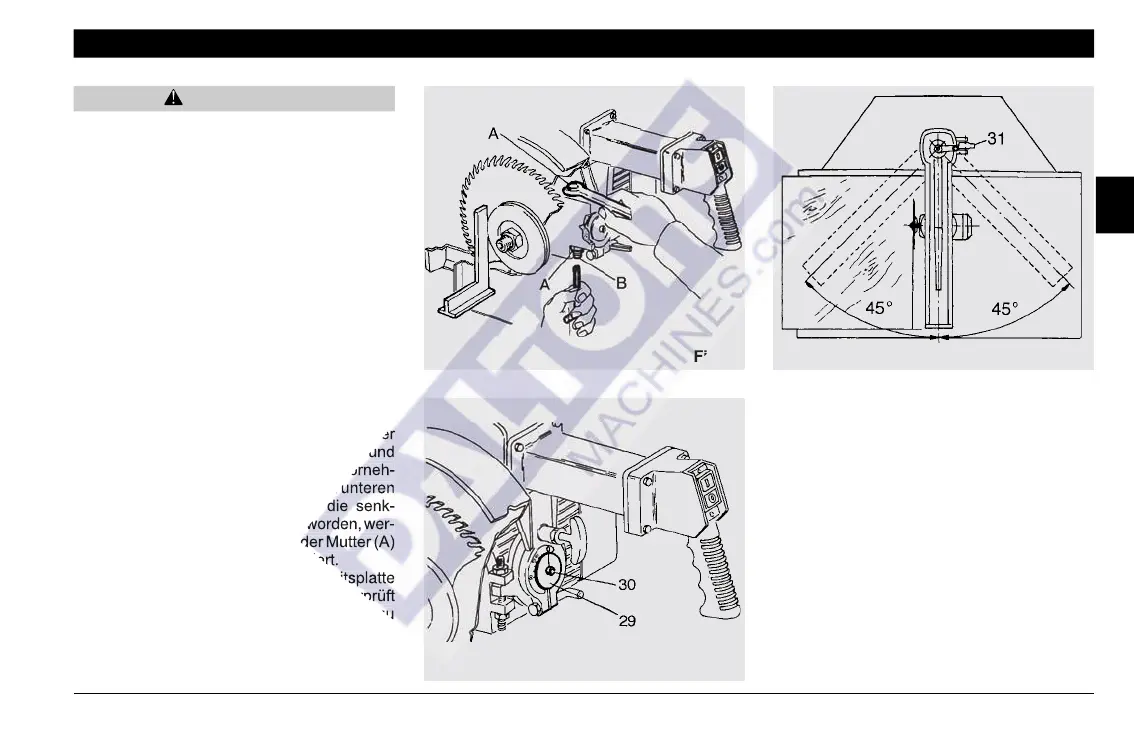 - Die Sägeblattabdeckung wie im Abschnitt 2-