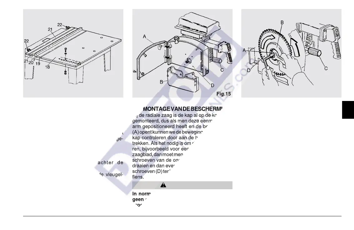 zaagblad, dan moet men eerst de 4 bevestigings-