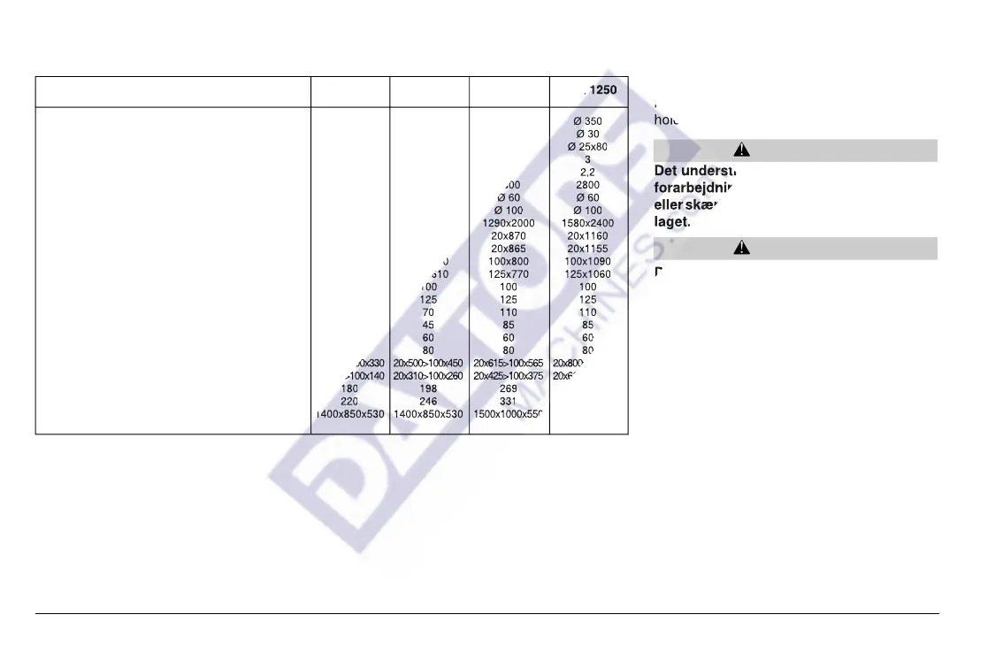 Max. h skæring, klinge på 45º (mm) [Ø350]