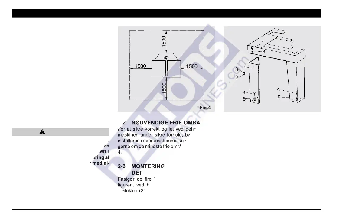 ninger for korrekt montering af maskinen.