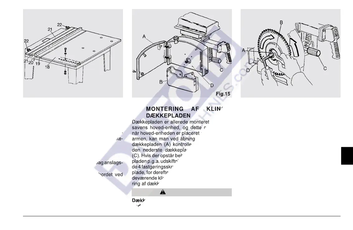 deværende klinge og de 4 skruer (D) til fastgø-
