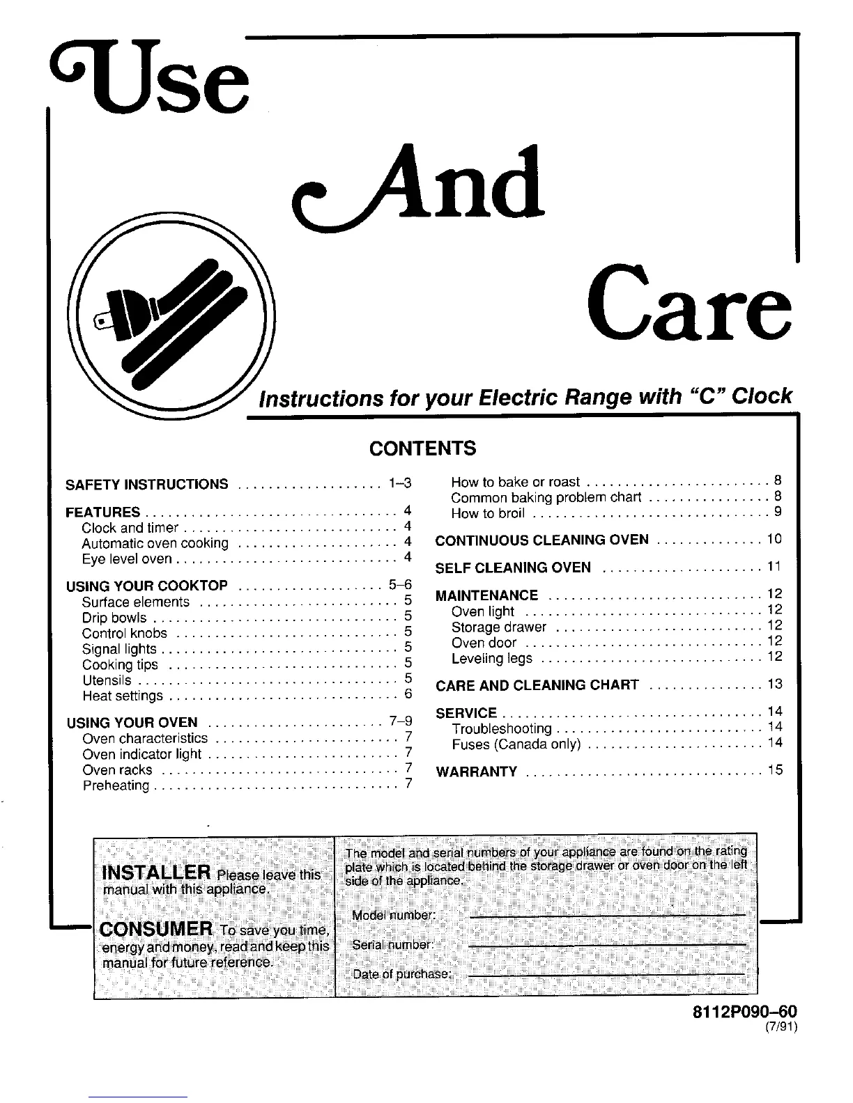 Instructions for your Electric Range with "C" Clock