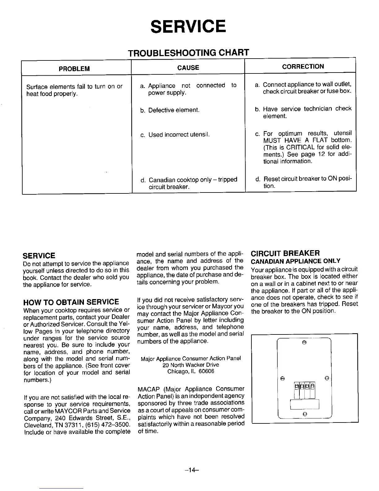 SERVICE model and serial numbersof the appli- CIRCUIT BREAKER