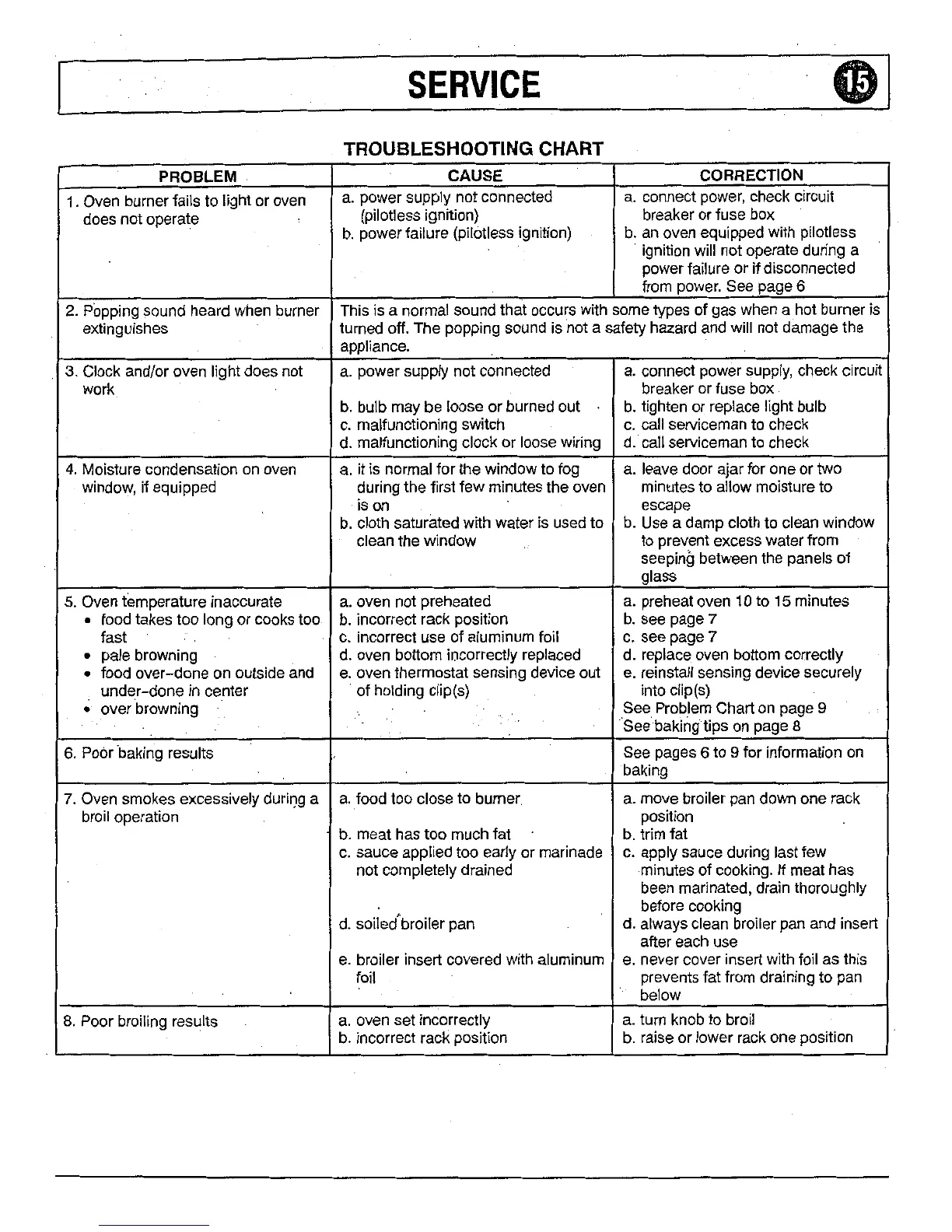 Magic Chef 9112 Gas - SERVICE; Appliance Troubleshooting Chart