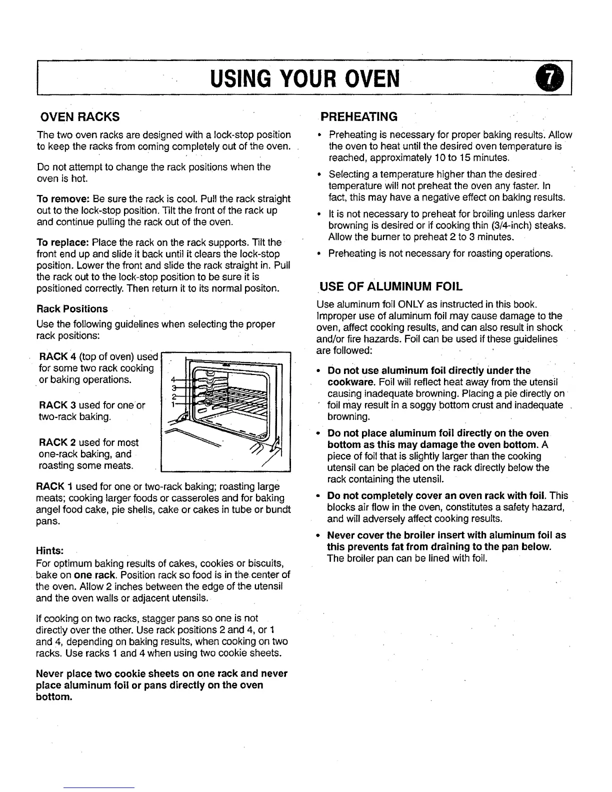 • Do not completely cover an oven rack with foil. This
