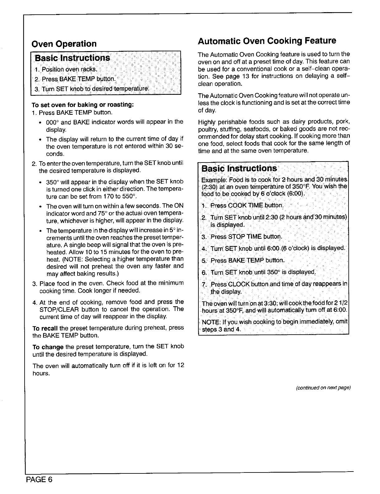 Basic Instru The AutomaticOven Cookingfeatureis usedtoturnthe