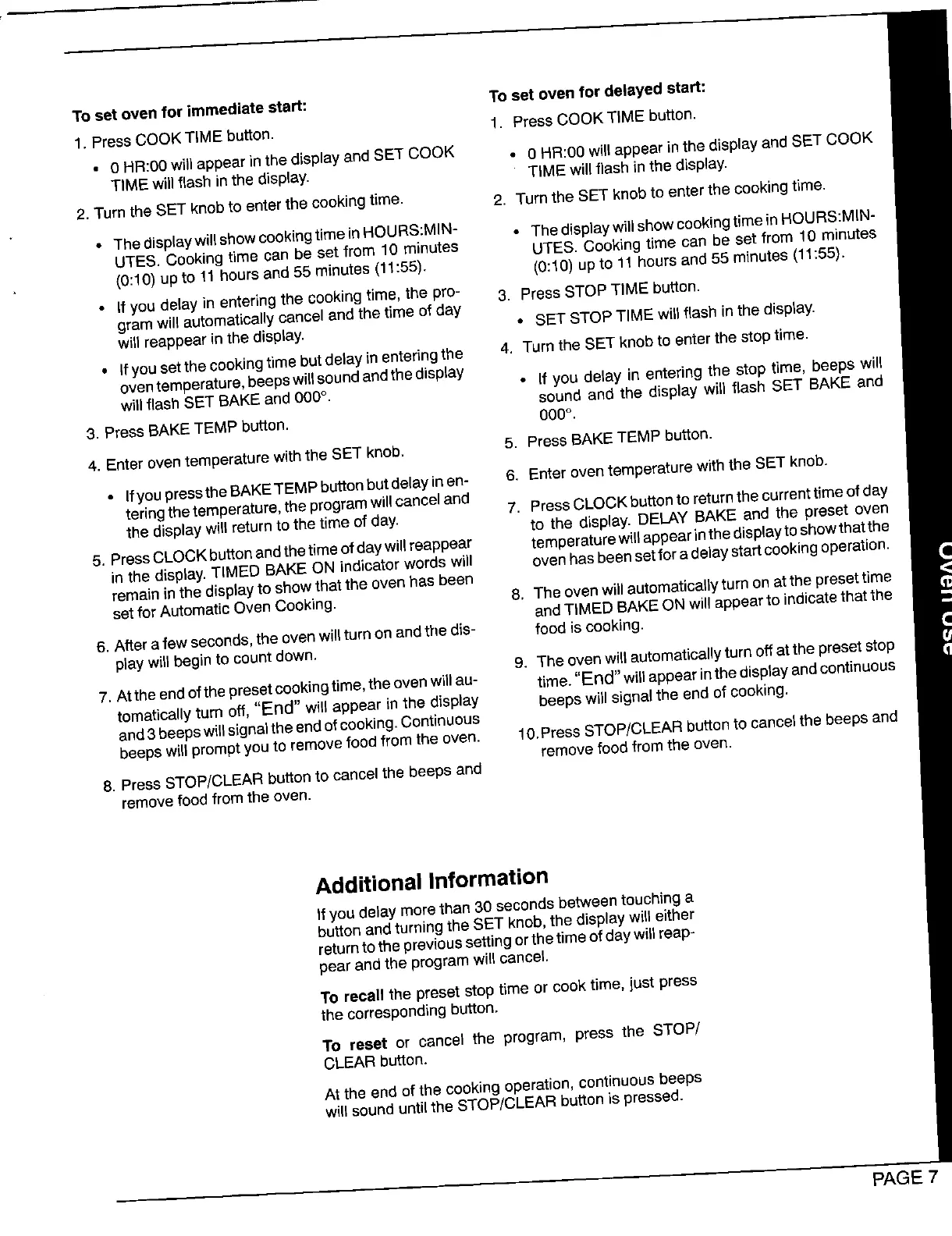 setfor Automatic Oven Cooking. 8. The oven willautomaticallyturn on atthe presettime