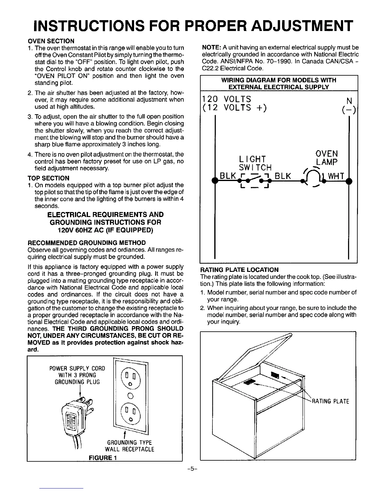 plugged into a mating grounding type receptacle in accor- tion.) This plate lists the following information: