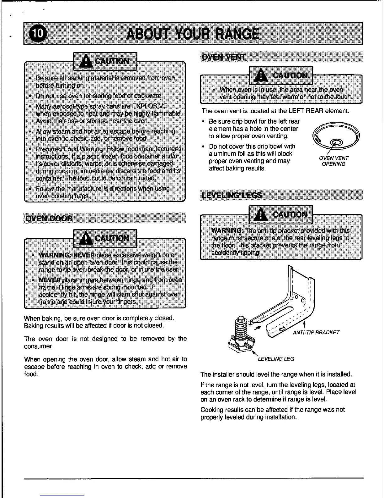 Magic Chef CEL1110AAH - About Your Range; Oven Door Safety and Operation; Leveling Legs and Anti-Tip Bracket