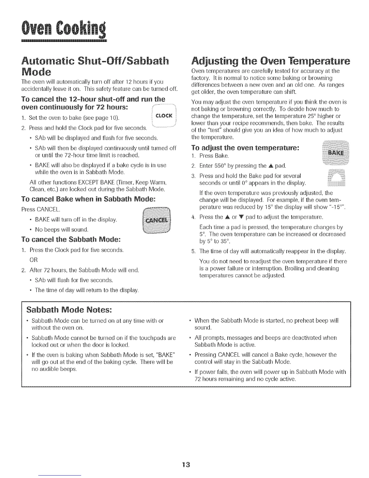 , If the oven is baking when Sabbath Mode is set. "BAKE"