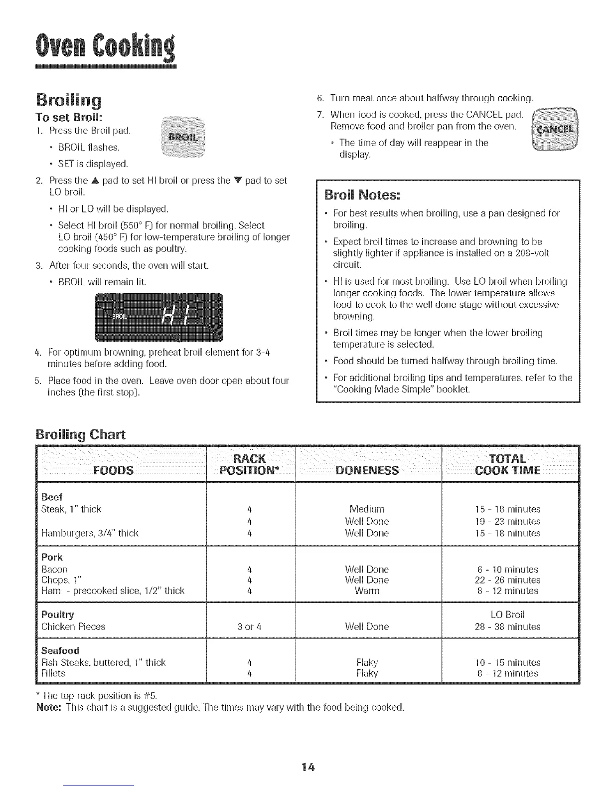 Note: This chart is a suggested guide. The times may vary with the food being cooked.