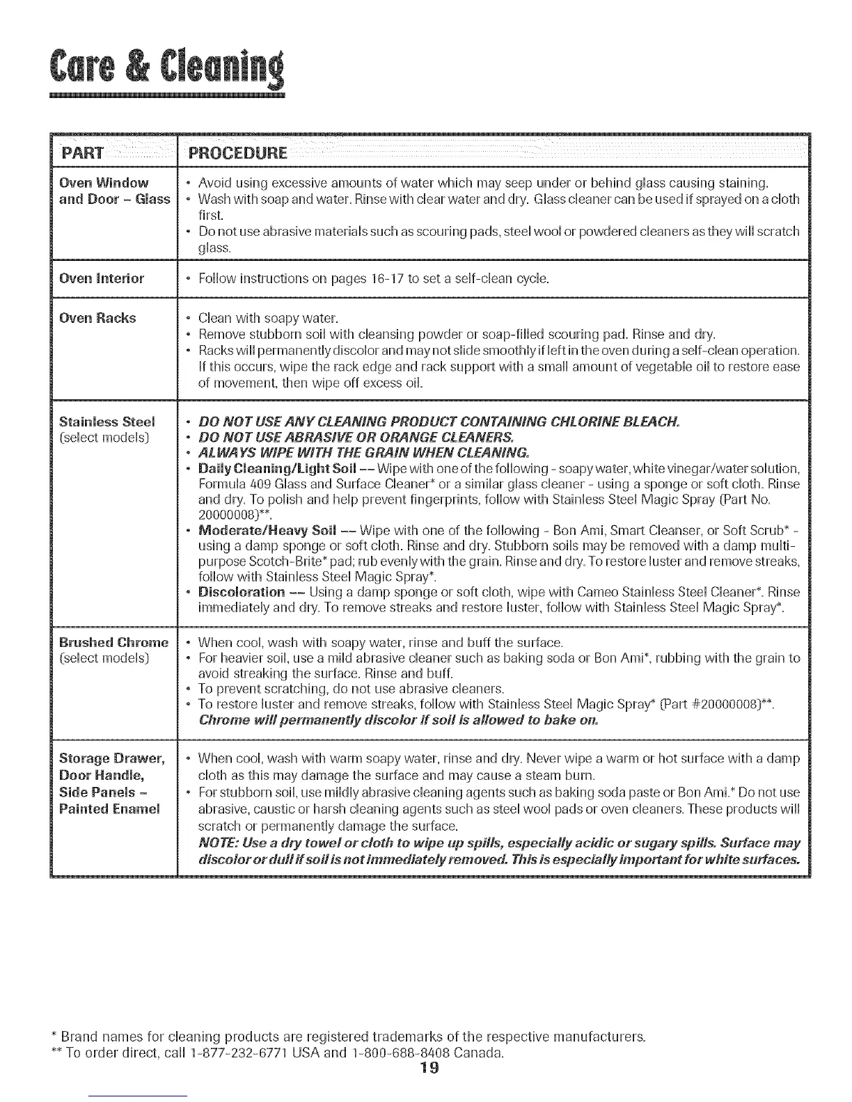 abrasive, caustic or harsh cHeaningagents such as steeHwooHpads or oven cHeaners.These products wiHH