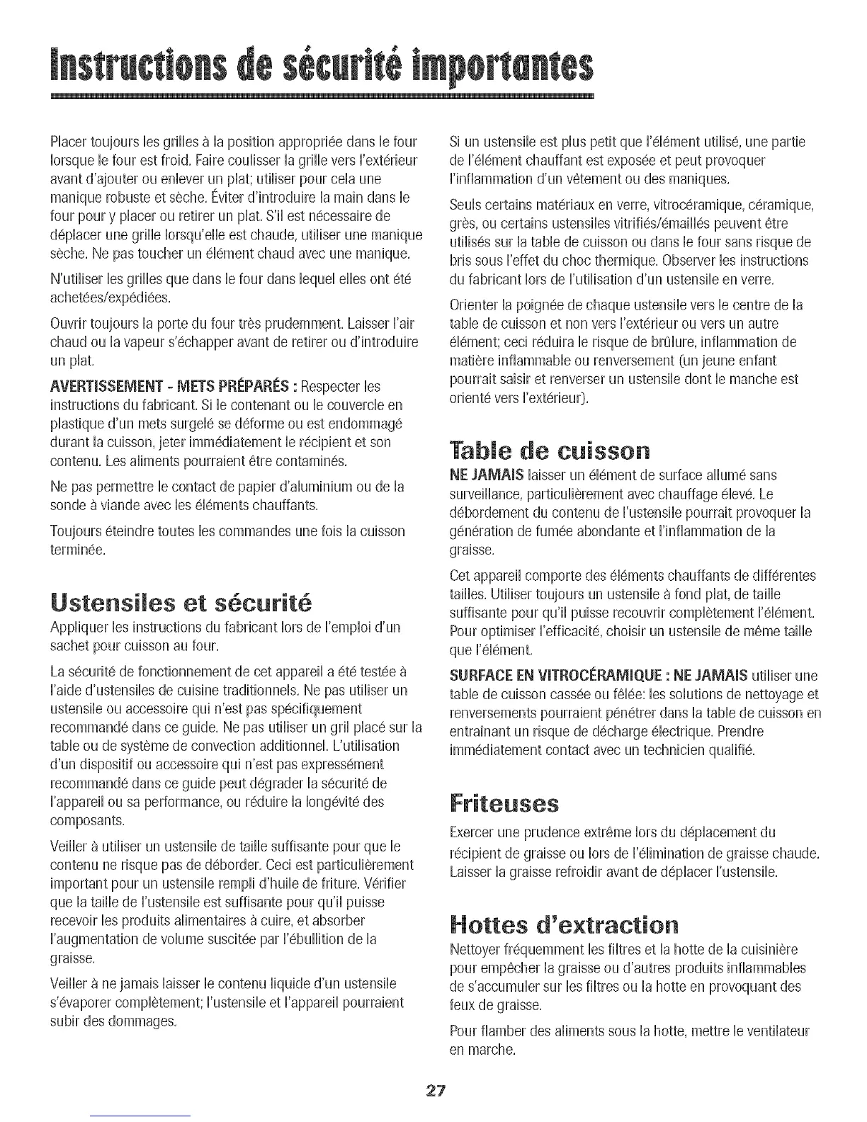 Nettoyer frequemment iesfiitres et ia hotte de ia cuisiniere