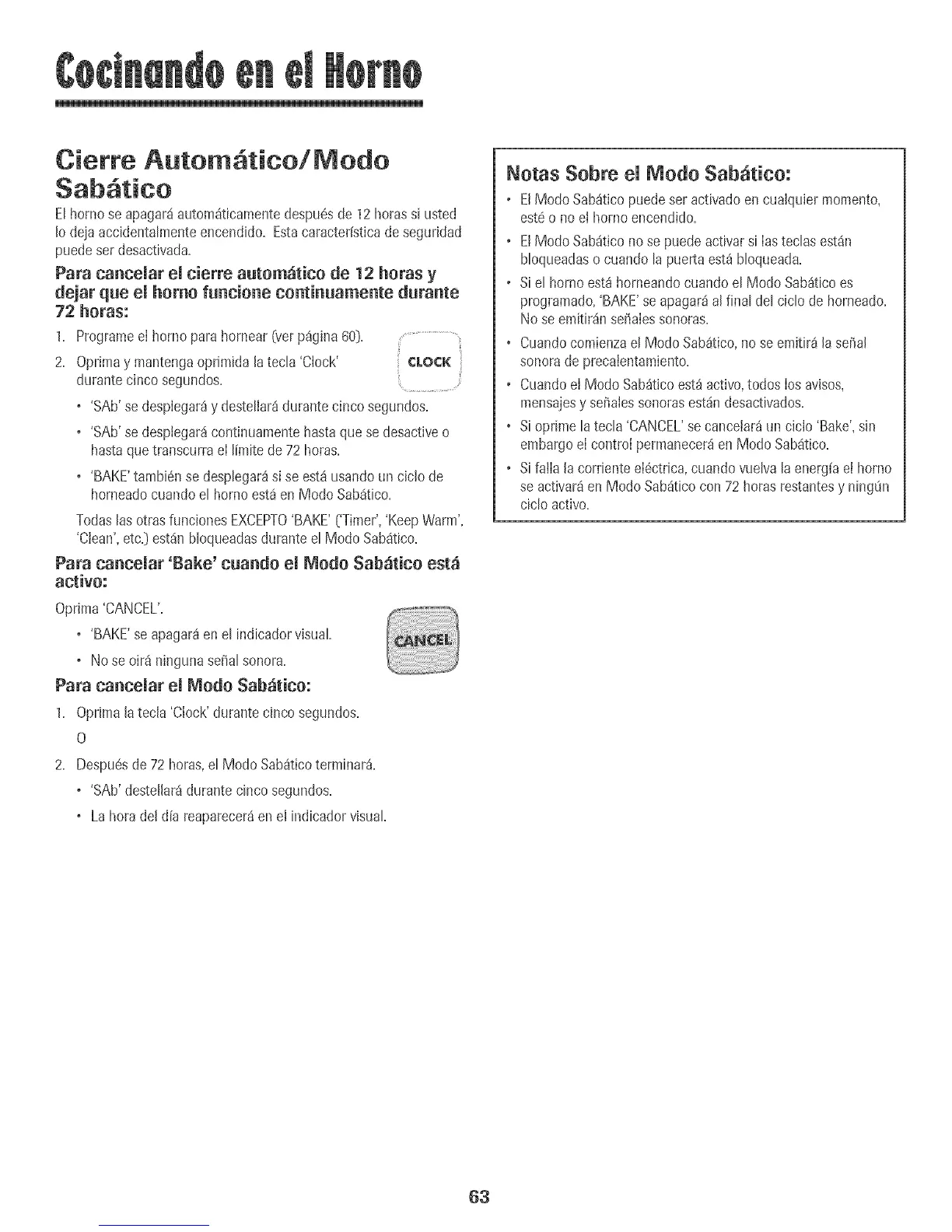 • Sioprime latecla 'CANCEL'secancetar_Lmciclo 'Bake',sin