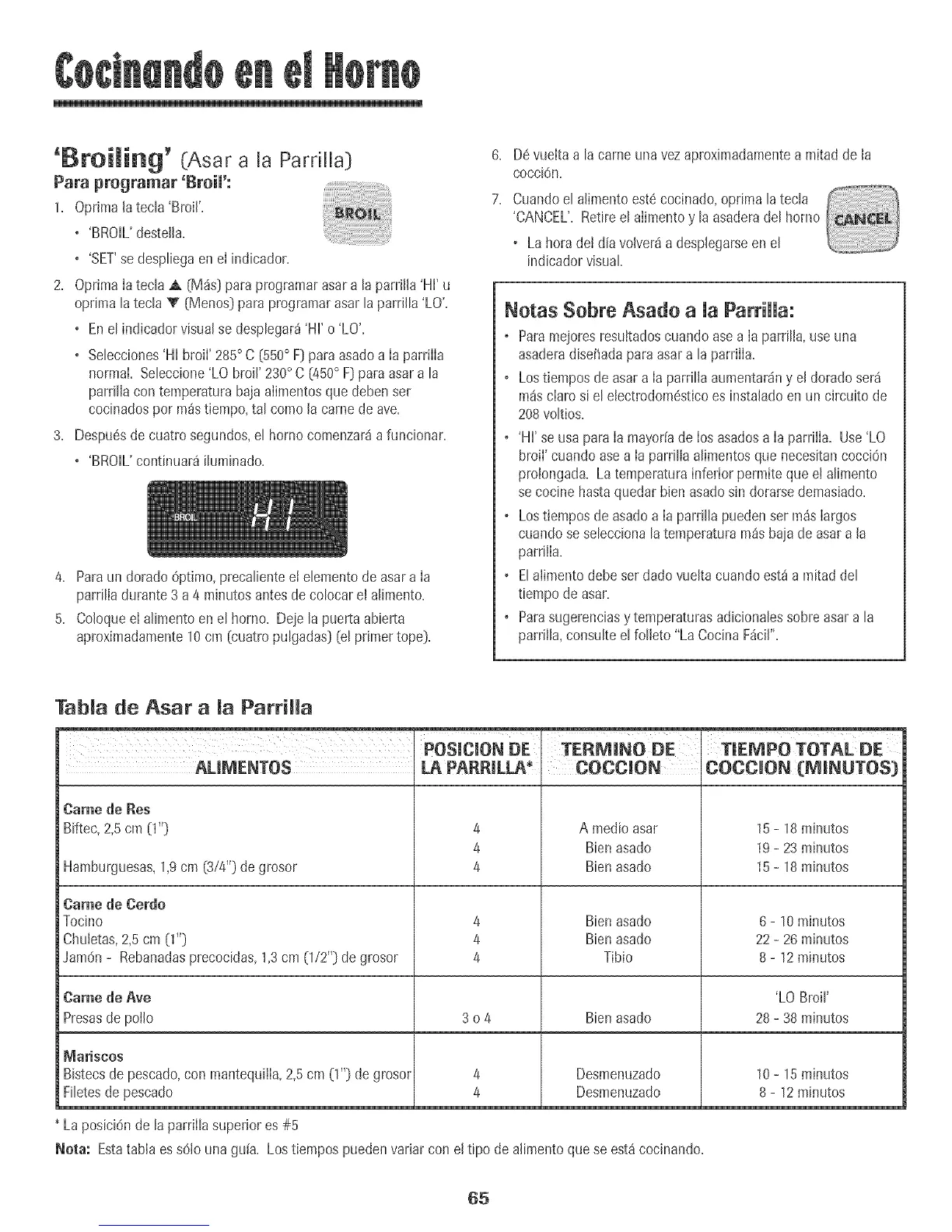 normal Seleccione'LO broil'230° C[450° F) paraasara la