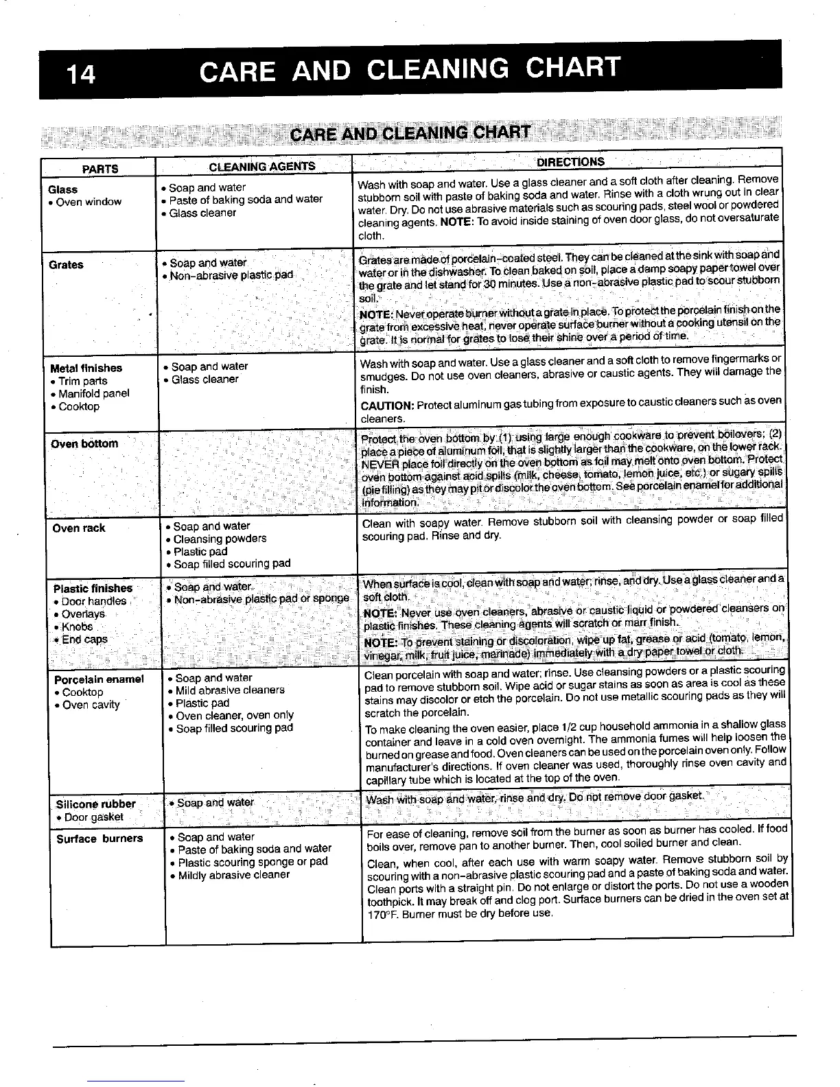 Surface burners * Soapand water Forease ofcleaning,removesoilfromthe burneras soonas burnerhas cooled.Iffood
