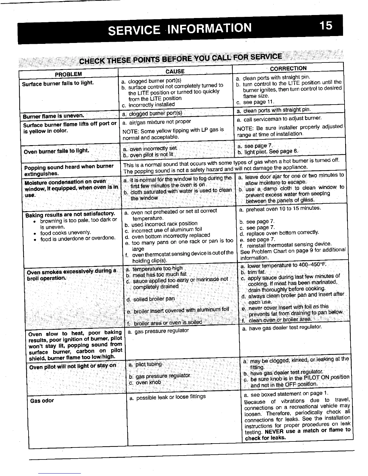 Gas odor a. possibleleak or loosefittings a, see boxed statement on page 1.