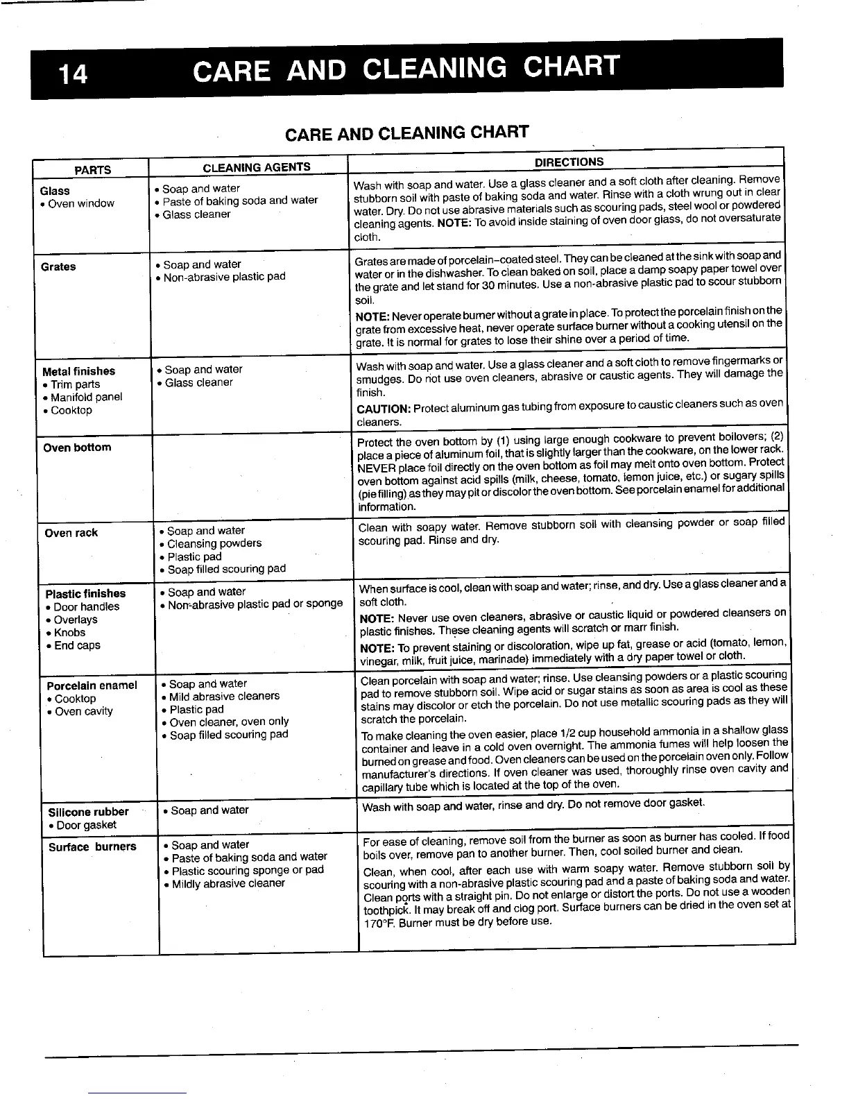 Surface burners • Soap and water For ease ofcleaning,removesoilfromthe burnerassoon as burner hascooled. Iffood
