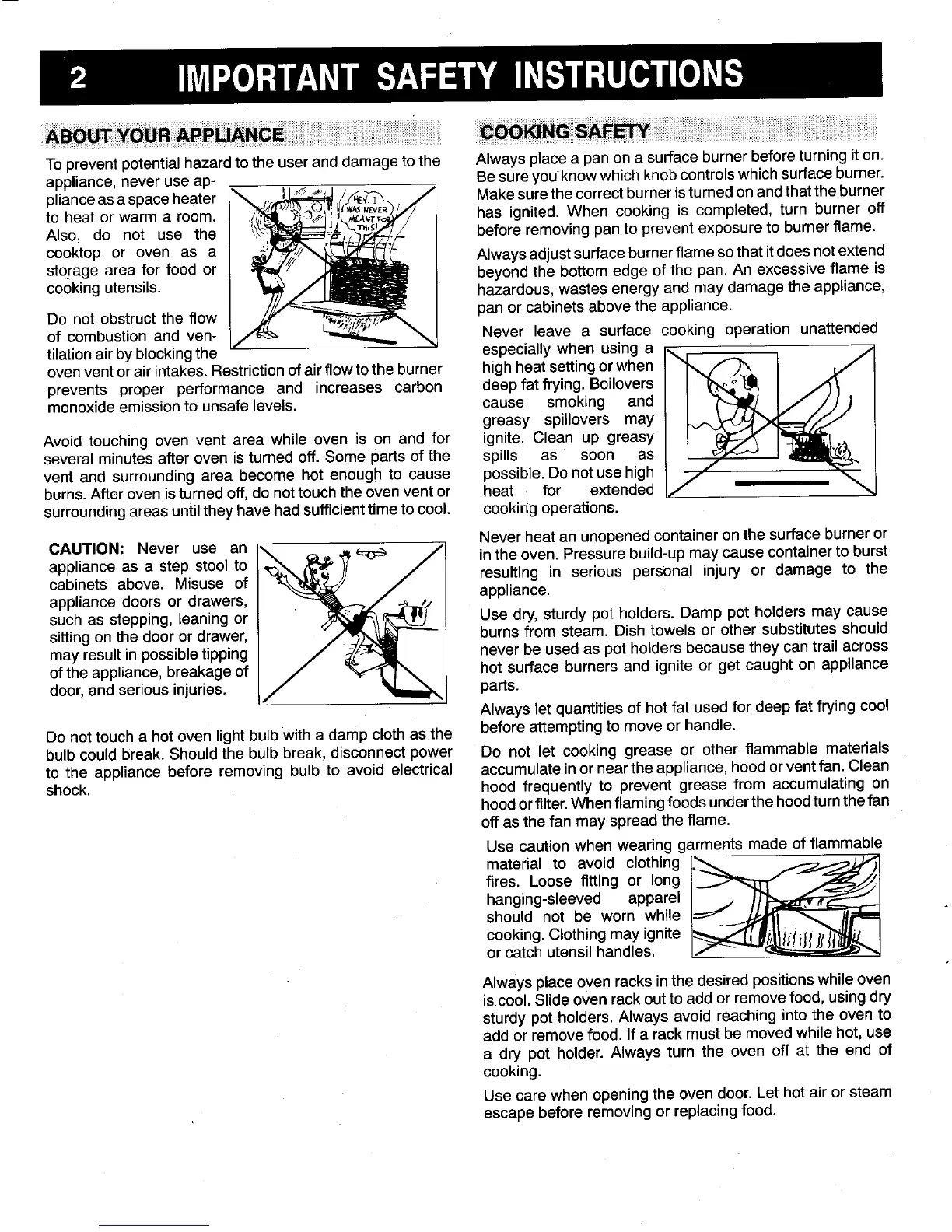 oftheappliance,breakageof hotsurface burnersand igniteor get caughton appliance