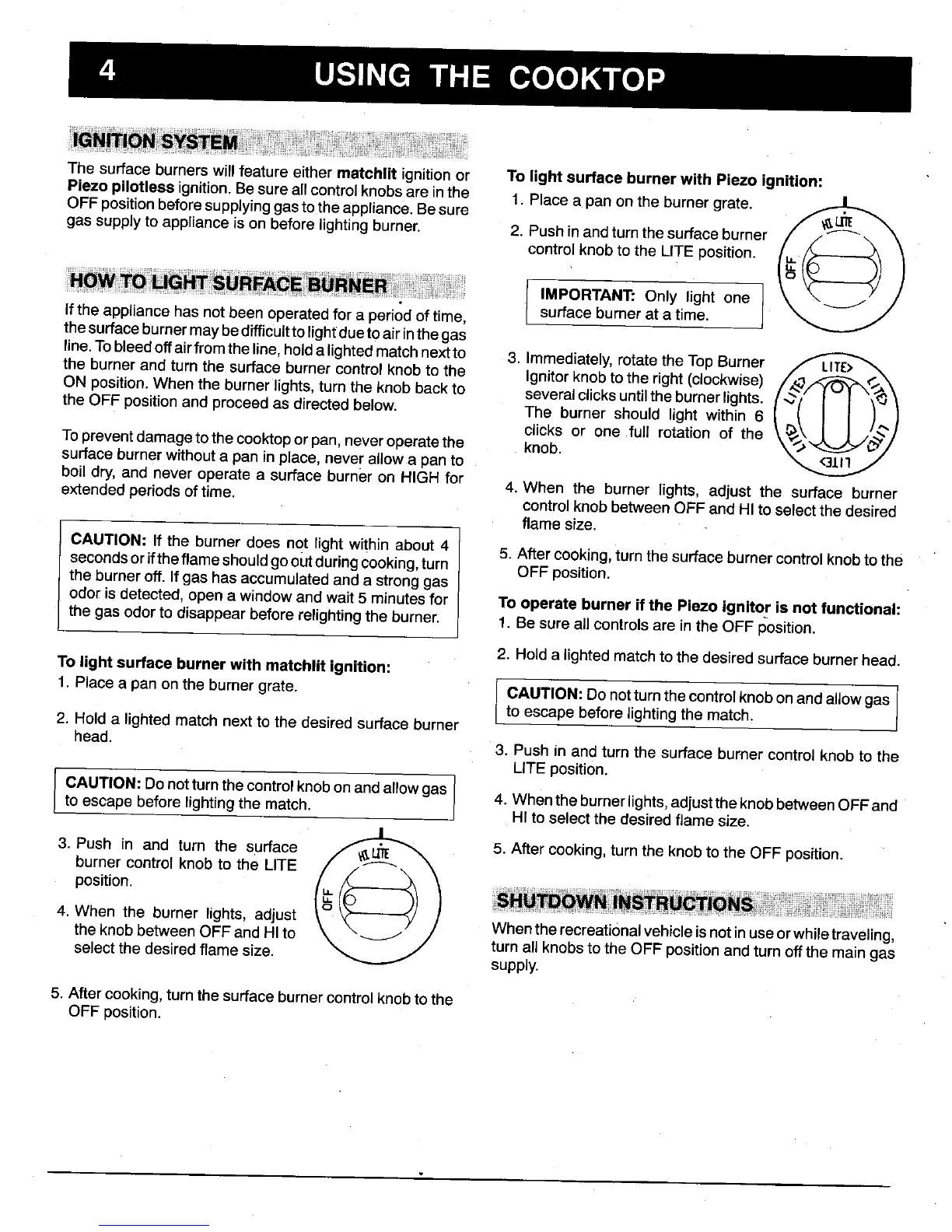 The surface burnerswillfeatureeither matchlit ignitionor To light surfaceburnerwith Piezo ignition: