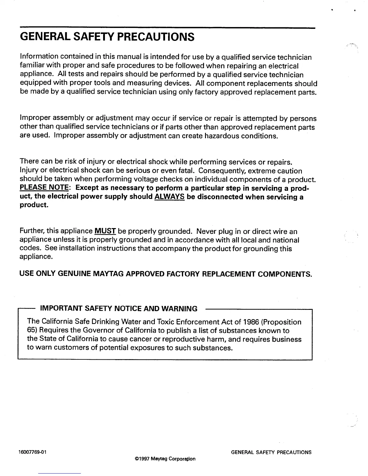 Magic Chef DU4500 - General Safety Precautions; Important Safety Notice and Warning