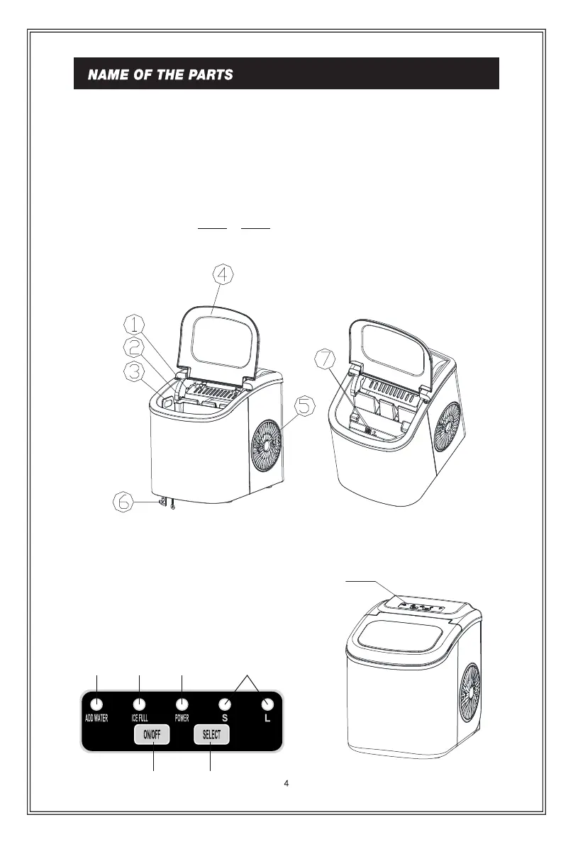 F. Button to select ice cube size