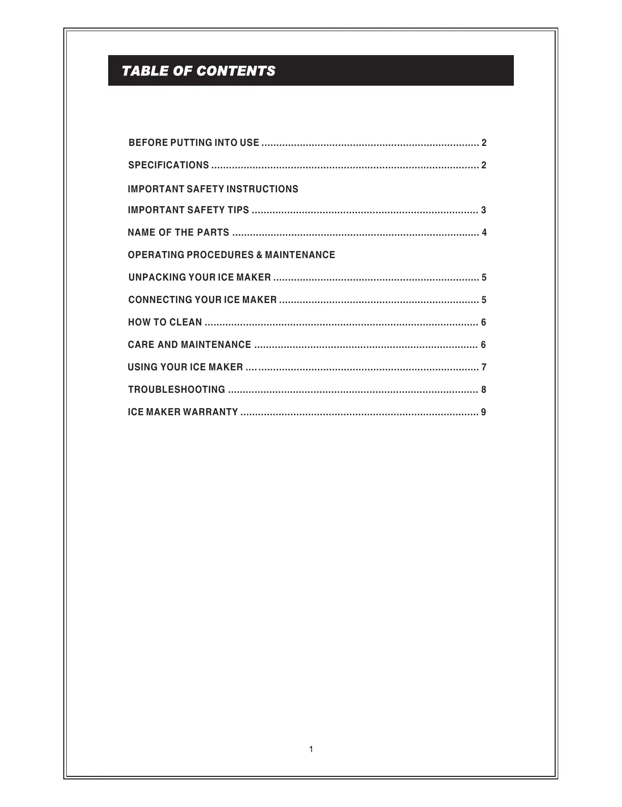 UNPACKING YOUR ICE MAKER ...................................................................... 5