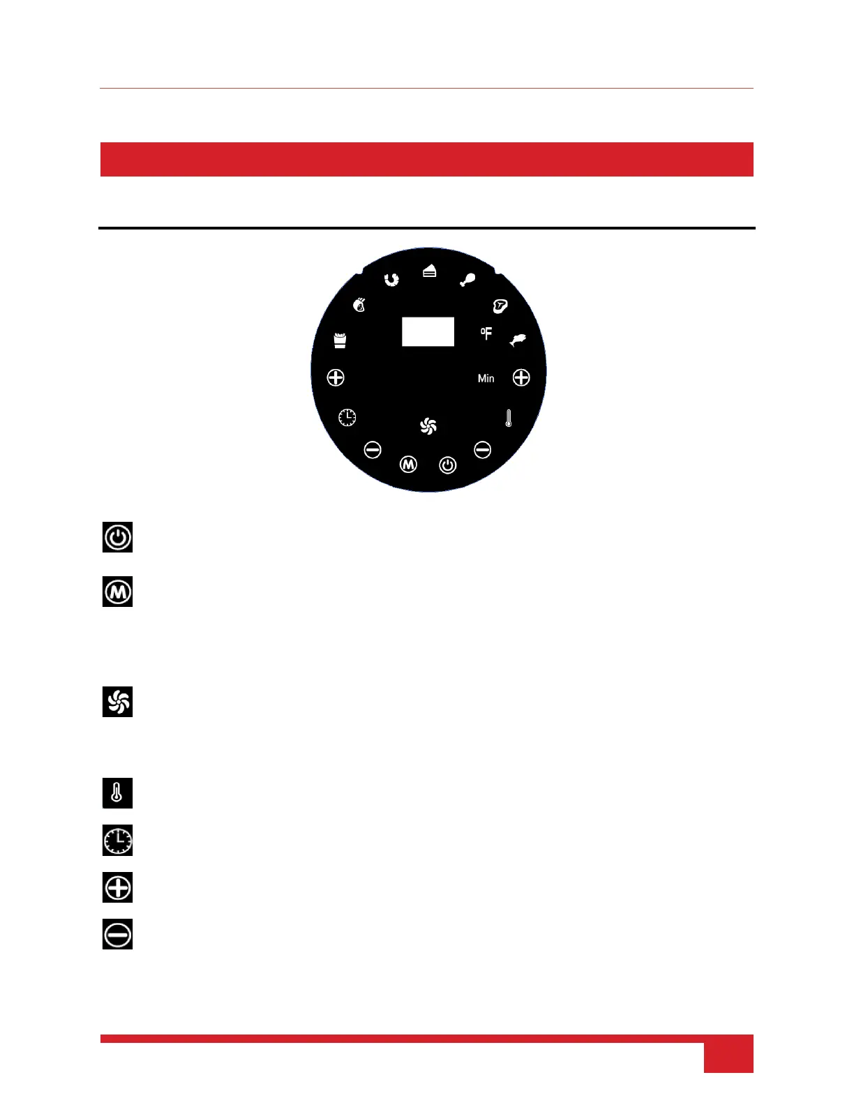 MINUS. Press to decrease the cooking time and temperature accordingly.