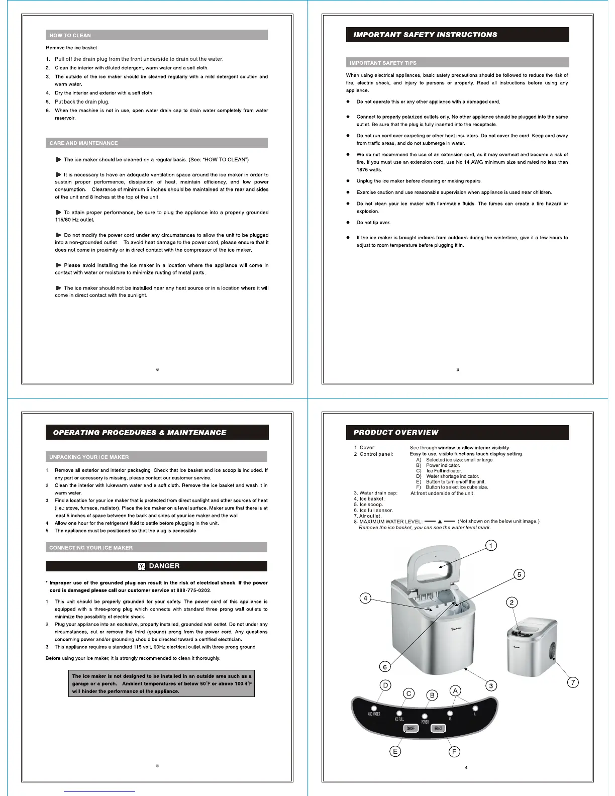 Magic Chef MCIM22SV - Important Safety Tips; Product Overview; Operating Procedures & Maintenance; Unpacking Your Ice Maker